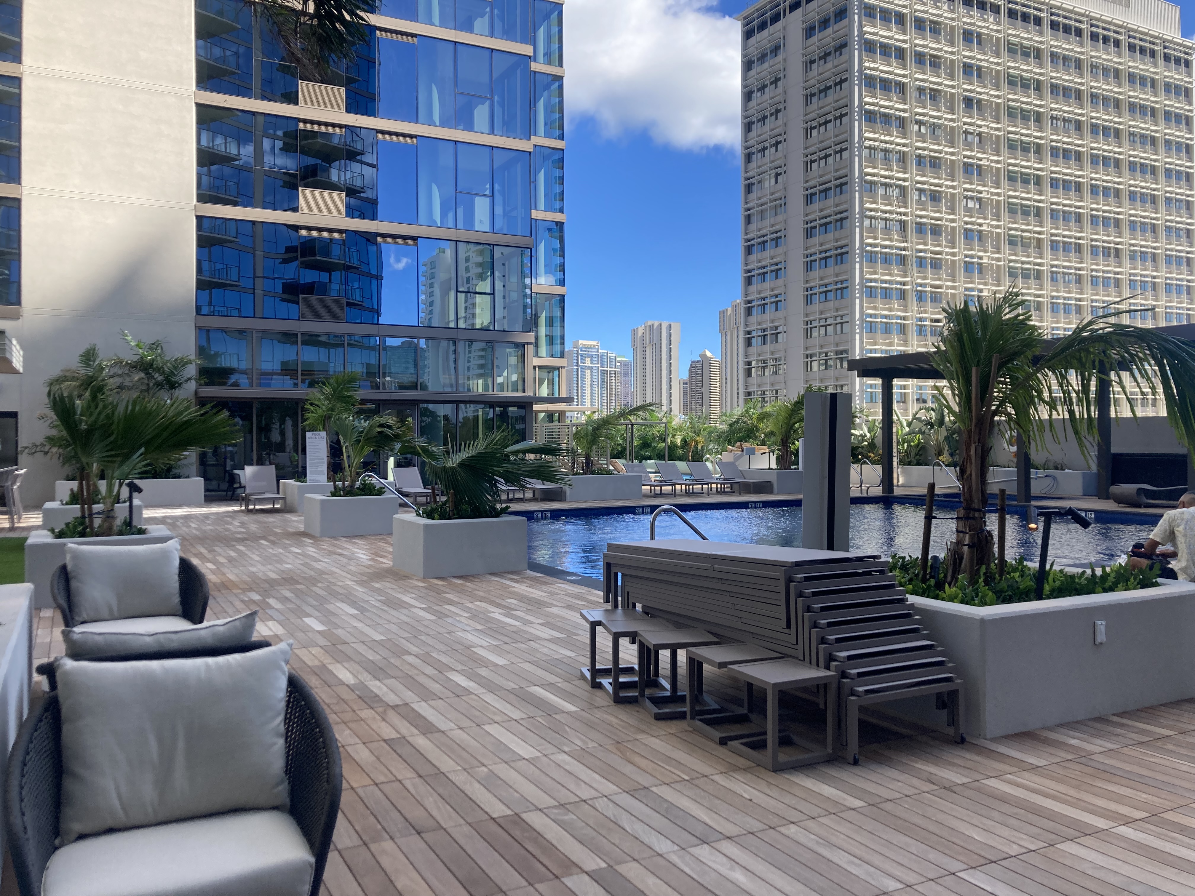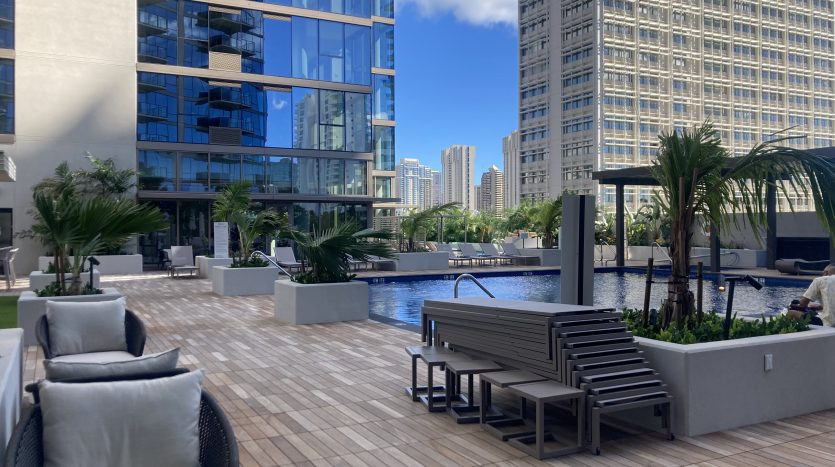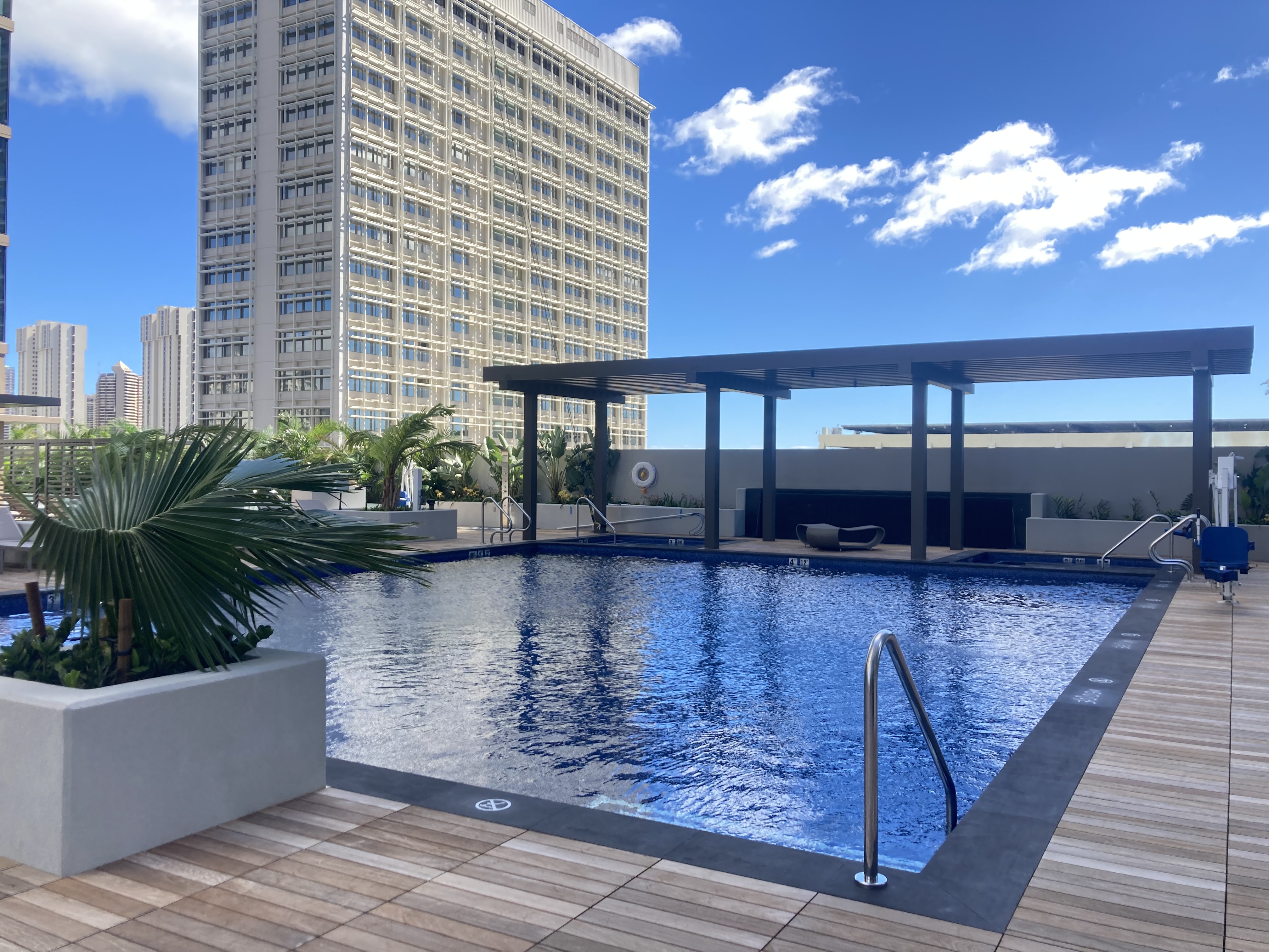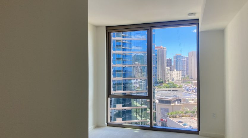 築浅物件「Sky Ala Moana West」の17階の1ベッドルームの海向きのお部屋になります。