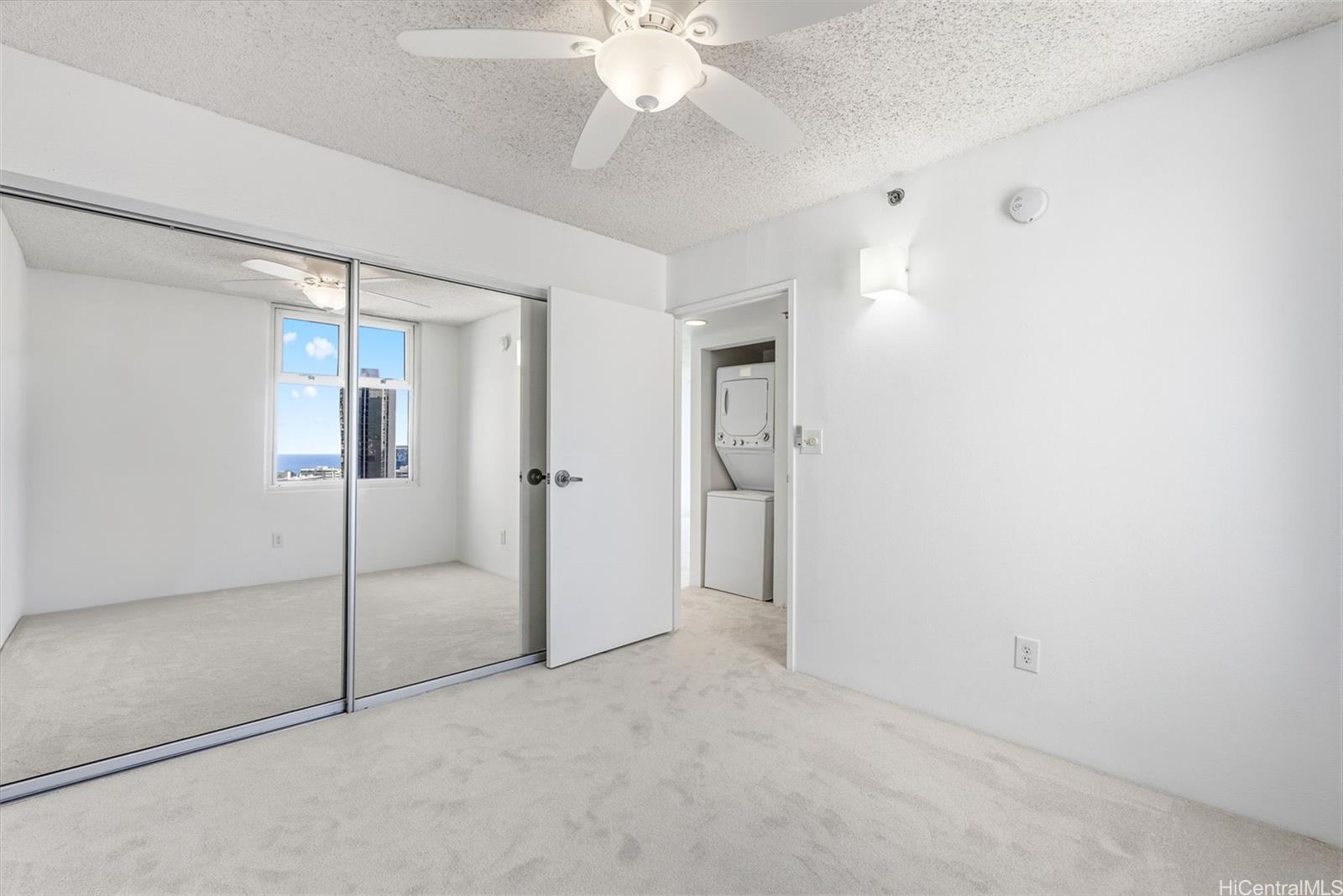 High Floor Unit & Corner-End Location! This desirable 2-bedroom, 2-bath offers stunning Diamond Head and city views from the 27th floor, along with the convenience of 2 parking stalls. Enjoy cool breezes and natural light. Brand new carpet and a new range hood were installed prior to listing. In-unit washer & dryer and refrigerator replaced within the last two years, making this home move-in ready. Centrally located near hospitals, schools, Downtown Honolulu, Ala Moana, and more, this secured building offers ample guest parking, a site-manager, and fire sprinklers for added peace of mind. A wonderful opportunity to own a well-maintained unit in a prime urban location!