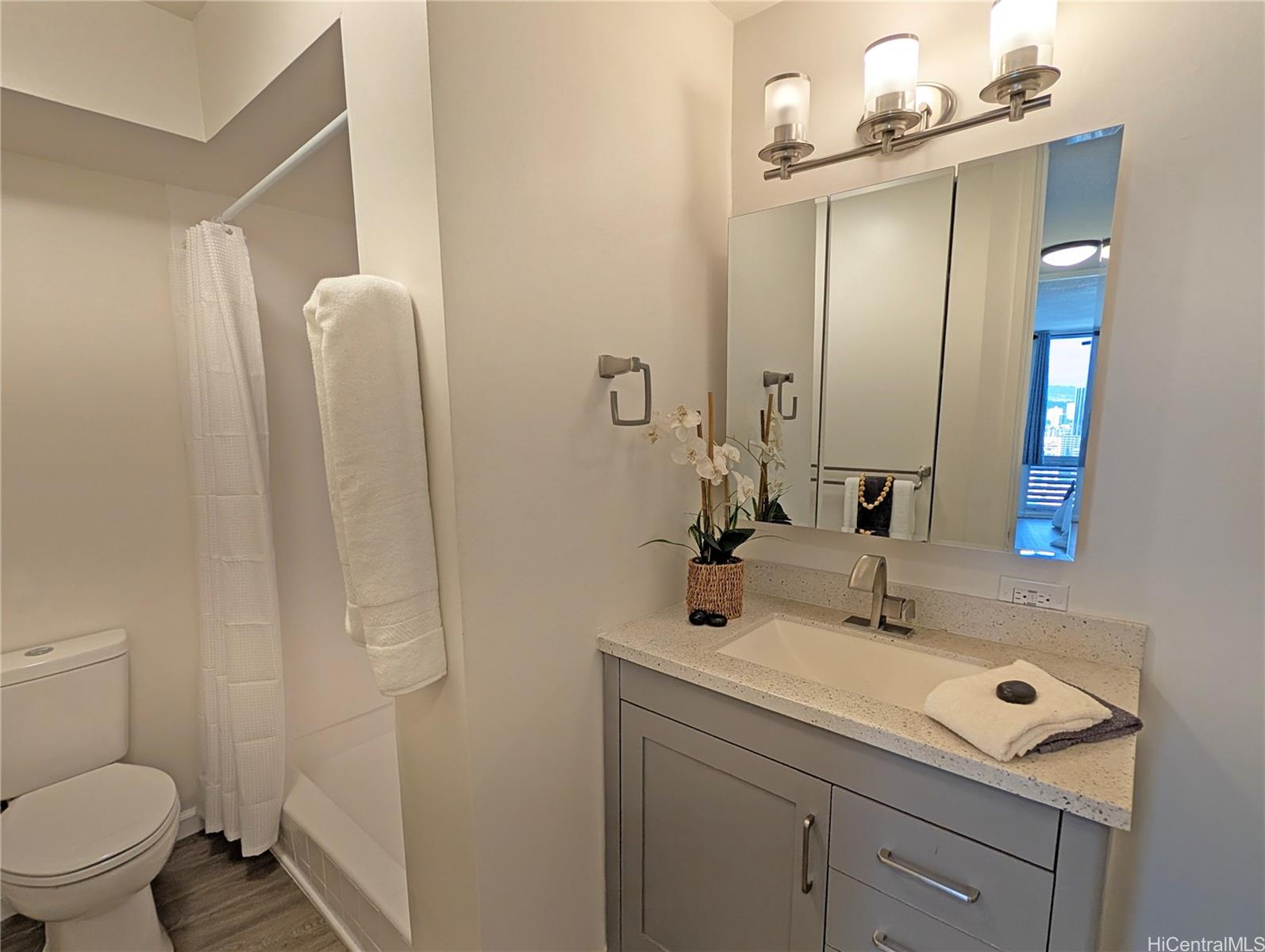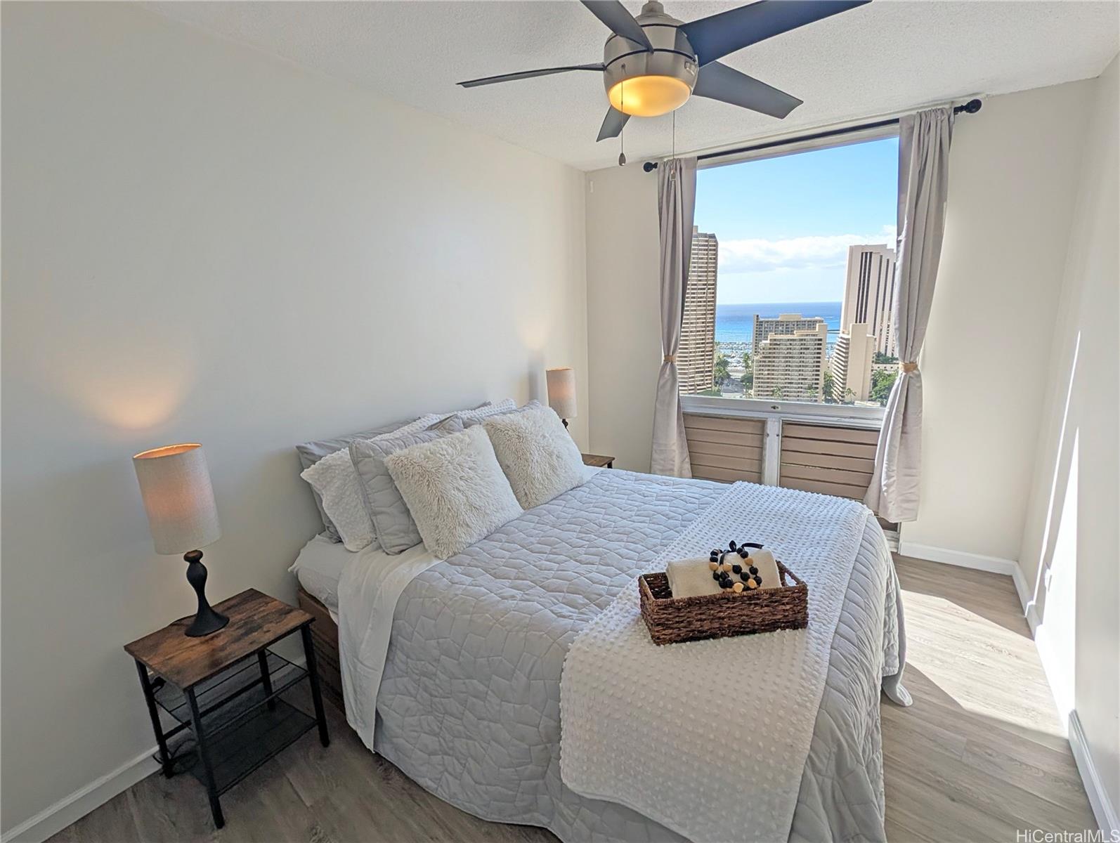 COME HOME to this HIGHLY DESIRABLE corner 3-bedroom residence in the PREFERRED “06” stack at 1717 Ala Wai. Perched on a high floor, this BRIGHT and SPACIOUS home captures sweeping OCEAN, CANAL, CITY, and MOUNTAIN views, cooling island breezes, and colorful SUNSET skies—creating an effortless ISLAND LIVING experience. At the heart of the home, a beautifully REMODELED and MODERN kitchen features a countertop-height sit-down passthrough, seamlessly connecting the kitchen, dining, and living areas—perfect for everyday living and ENTERTAINING. Luxury vinyl flooring adds a clean, contemporary feel throughout the living spaces. Enjoy the convenience of a centrally located COVERED parking stall in a WELL-MANAGED, fully insured building with major capital improvements already completed and resort-style amenities. Ideally located just moments from Waikiki beaches, Ala Moana, shopping, dining, and entertainment—this is a rare opportunity to OPEN THE DOOR AND TRULY LIVE in one of Honolulu’s most reknown neighborhoods.
