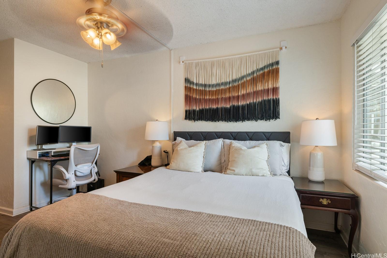 Own your slice of paradise with this renovated 1 bedroom, 1 bathroom leasehold condo in the heart of Waikiki! 411 Kaiolu is a hidden gem, and it’s pet friendly! Oven and glass cooktop, LVP flooring, fresh paint throughout, and blinds in each room done in Aug 2023. The unit also has a split AC, ceiling fans, good closet space, and it’s an end unit with lots of light! Unit comes furnished. Enjoy the sunny pool and community laundry. This is a boutique building in Waikiki but on a less busy side street, it’s convenient to walk to Waikiki beaches, shops, restaurants, and many bus lines. The long land lease allows for a 15- or 20-year mortgage. May be possible to rent parking nearby. Request at least 48 hours’ notice for showings due to tenants.