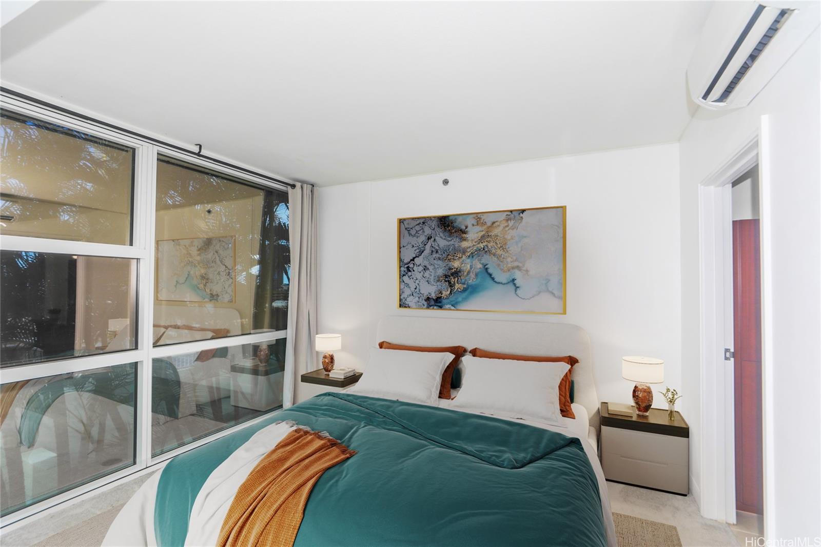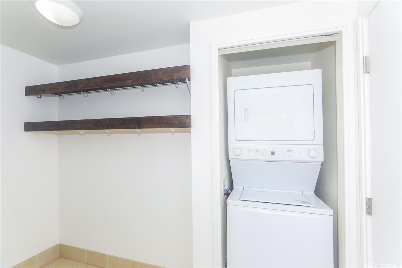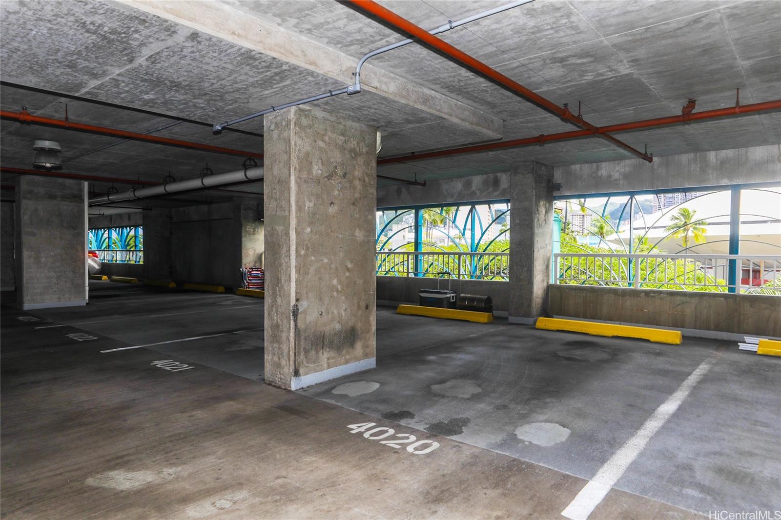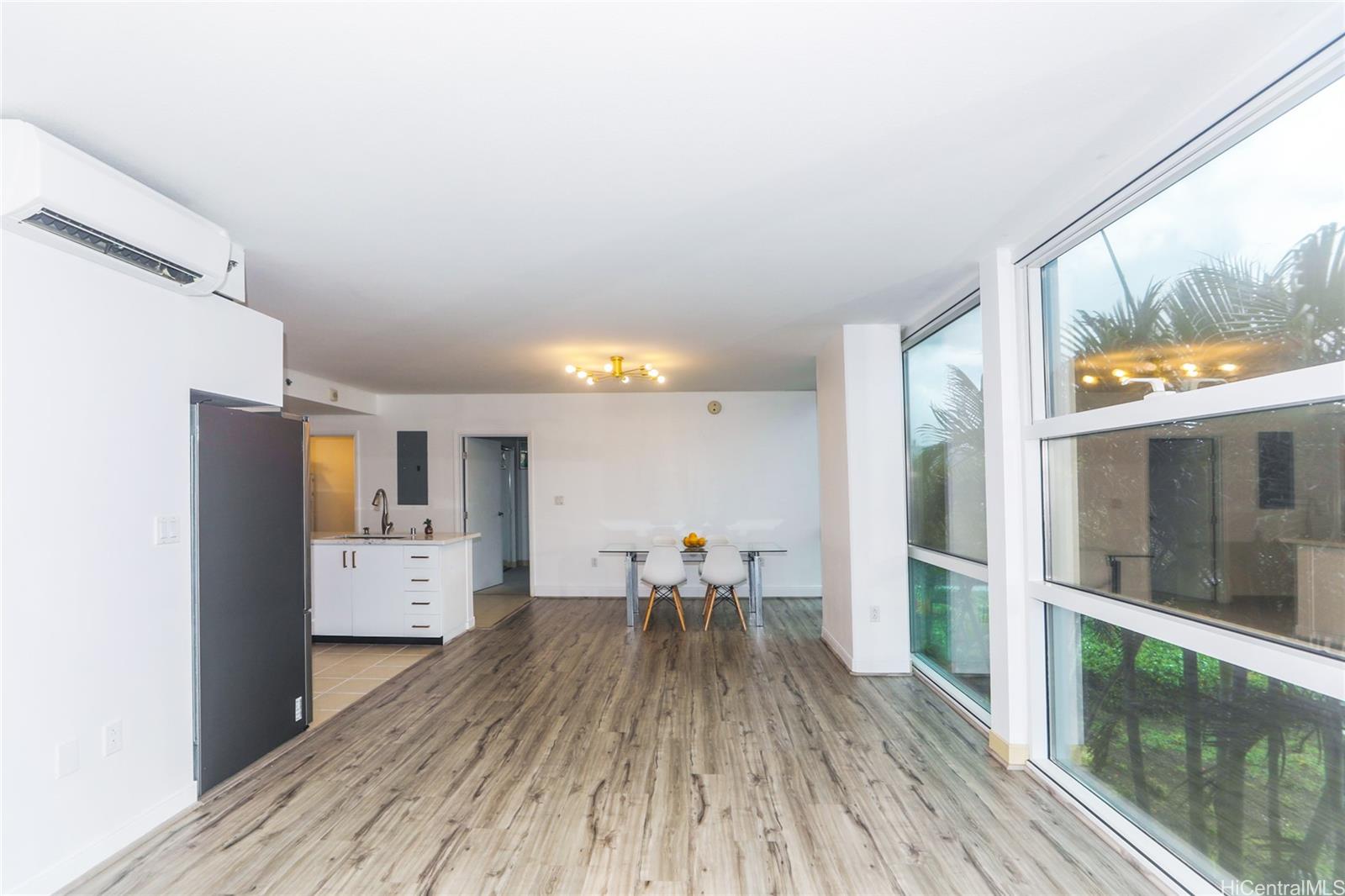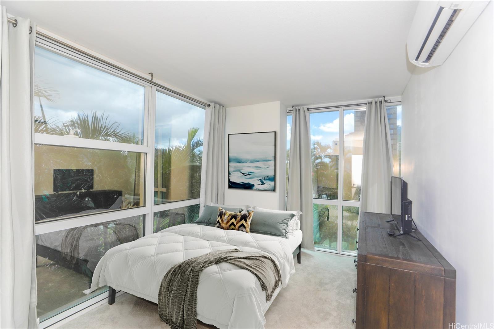 Highly desired and rarely available, this breathtaking 2 bedroom, 2 bath, 1 parking unit located in the heart of urban Honolulu, has floor to ceiling glass connecting the outside world to your future home! The open floor plan provides the ultimate use of space between the kitchen, living and eating areas. Highlights include luxury vinyl plank flooring in the living and dining areas, 3 split AC units, quartz kitchen counters tops with stainless steel appliances, washer/dryer in unit, generous sized bathrooms, fire sprinklers, pet friendly and a storage unit (#S412). Amenities deck has a swimming pool with spa, BBQ, party room, open play areas, and a gym on the 1st floor. The building is secure, has 100% hurricane insurance, and a friendly residence office staff.