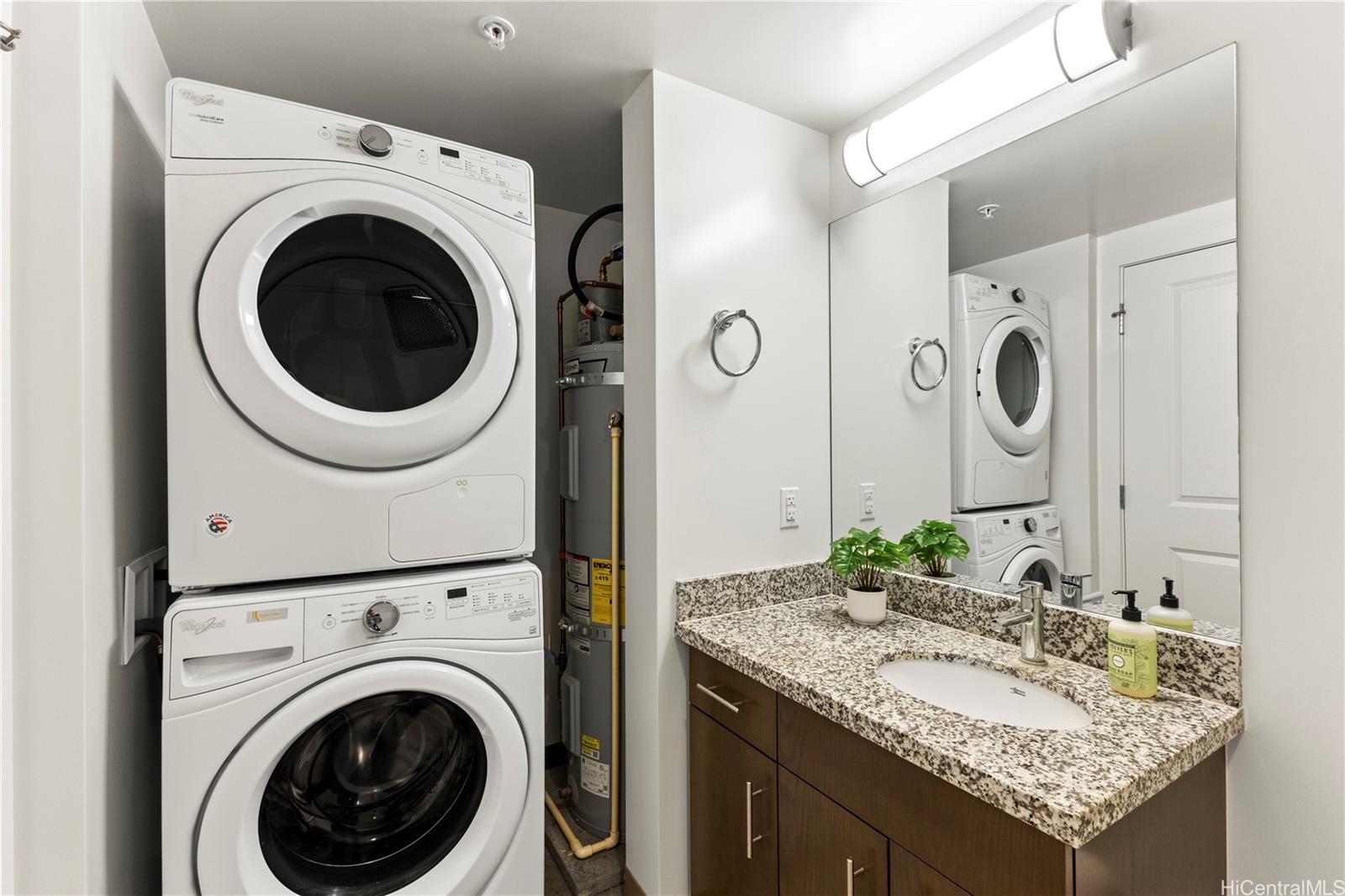 Welcome to 988 Halekauwila—a modern, high-rise residence in the center of Kaka‘ako, Honolulu’s rising urban core. This 2-bedroom, 2-bath unit offers a smart layout with granite countertops, stainless steel appliances, carpeted bedrooms, and sleek porcelain tile in the bathrooms. Each room is cooled by its own window A/C unit for year-round comfort.Step outside your door and enjoy incredible building amenities: panoramic ocean and mountain views from the rooftop deck, a movie theater, music studio, fitness center, dog run, BBQ areas, indoor/outdoor lounges, and play zones for the kids.Downstairs? You’ve got Longs Drugs, with SALT, Ward Village, and Ala Moana just minutes away. Restaurants, bars, shopping—it’s all right here.Ready to move in? Schedule a private showing and make this Kaka‘ako lifestyle yours.