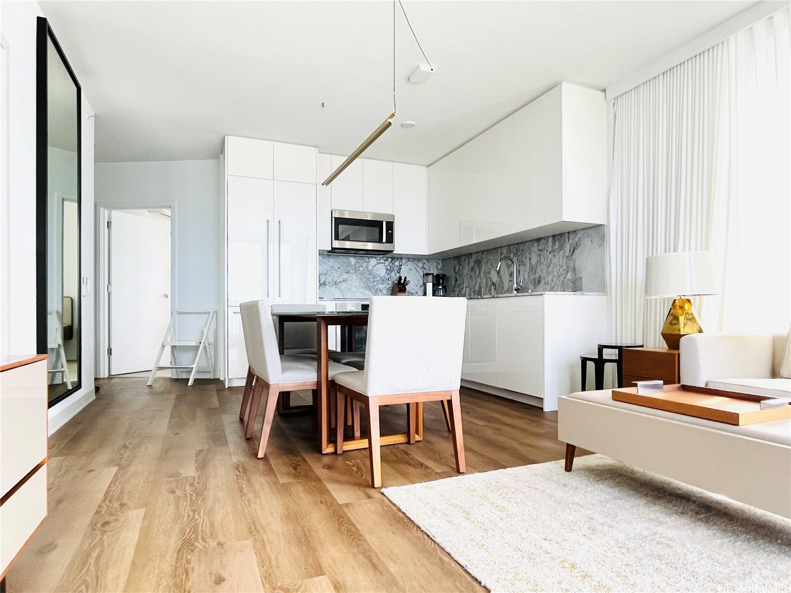 ワード・ビレッジの「アアリイ」内、人気の高い「02スタック」にある中層階の住戸です。ダイヤモンドヘッドを望む美しいオーシャンビューと、洗練された都会と島の融合したライフスタイルをお楽しみいただけます。 設備の整ったこの2ベッドルーム・2バスルームの住戸は、快適さとプライバシーを重視した機能的な間取りとなっており、状態も非常に良好です。 この家は家具付きです。 明るくモダンなインテリアには、ボッシュ製の家電、天然石のカウンタートップ、ブラインド、そしてオーダーメイドのクローゼットシステムが調和し、すぐに住み始められる快適な住まいを実現しています。 この物件には、便利な場所に1台分の駐車スペースが備わっており、活気あふれるこの地域での日々の暮らしをより快適にしてくれます。 「アアリイ」の居住者は、プライベートカバナ付きのプール、フィットネスセンター、スパ、ヨガルーム、スカイテラス、バーベキューエリア、ドッグパーク、屋内・屋外の集いの場など、リゾートスタイルの設備を満喫できます。 子供用の遊び場やプールが、コミュニティの暮らしをさらに充実させています。 ワード・ビレッジの中心という絶好のロケーションにあり、ホールフーズや名店が並ぶレストラン、劇場、カフェ、ブティック、人気のファーマーズマーケットまで徒歩圏内です。 アラモアナ・ビーチ・パークも徒歩圏内にあり、最高のアウトドアレクリエーションと海辺の暮らしを楽しめます。 .