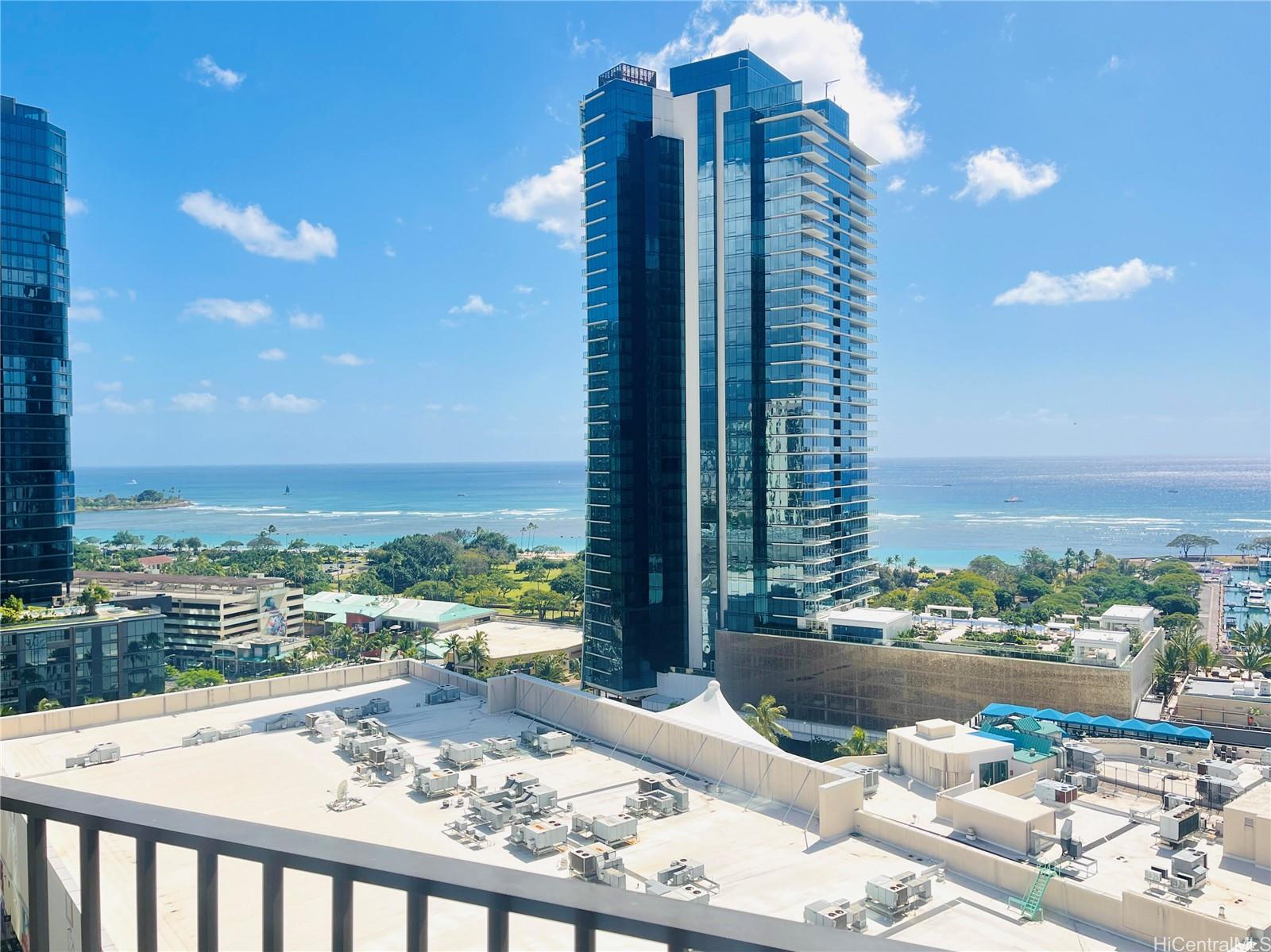 Mid-floor residence in the desirable “02 stack” at ‘A‘ali‘i in Ward Village, offering beautiful ocean views toward Diamond Head and a refined urban-island lifestyle. This well-appointed 2-bedroom, 2-bath unit features a functional layout designed for comfort and privacy, and presents in excellent condition.The home is fully furnished. Bright, modern interiors are complemented by Bosch appliances, natural stone countertops, window shades, and custom closet systems, creating a move-in-ready living experience.The unit includes one conveniently located parking stall, adding everyday ease in this vibrant neighborhood.Residents of ‘A‘ali‘i enjoy resort-style amenities, including a pool with private cabanas, fitness center, spa, yoga room, sky terrace, BBQ areas, dog park, and indoor/outdoor gathering spaces. A children’s play area and pool further enrich the community lifestyle.Ideally located in the heart of Ward Village, just steps from Whole Foods, renowned dining, theaters, cafés, boutique shopping, and the popular farmers’ market. Ala Moana Beach Park is also within close walking distance, offering the best of outdoor recreation and coastal living.