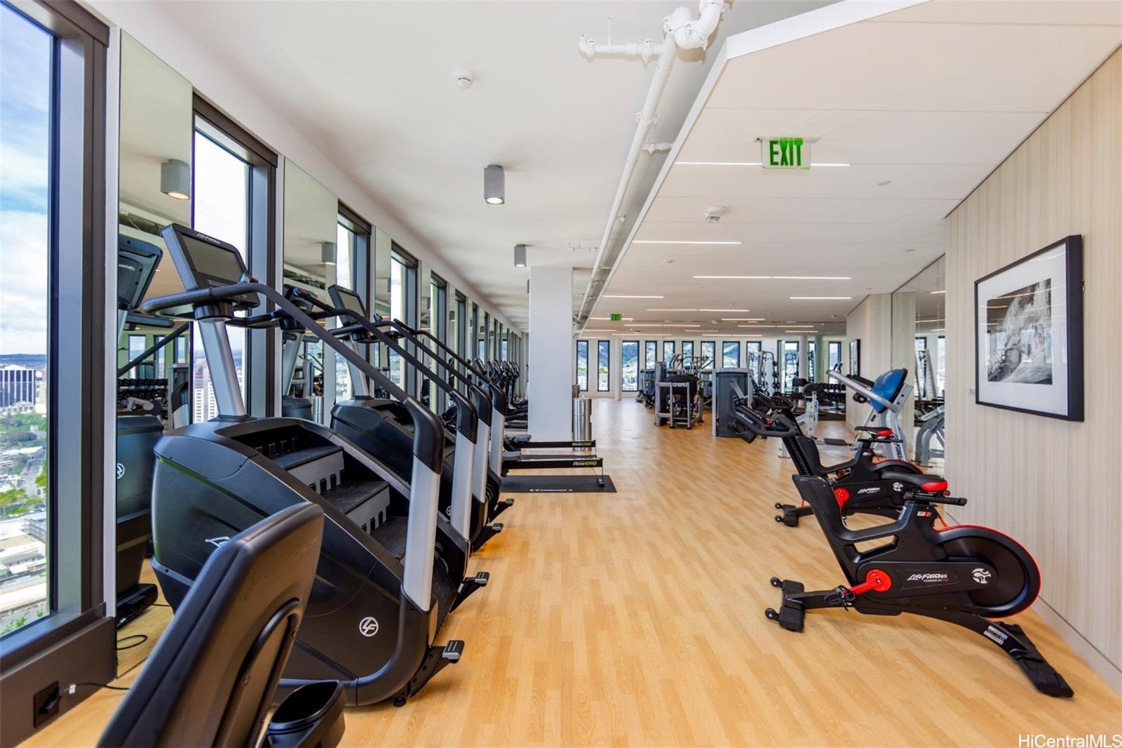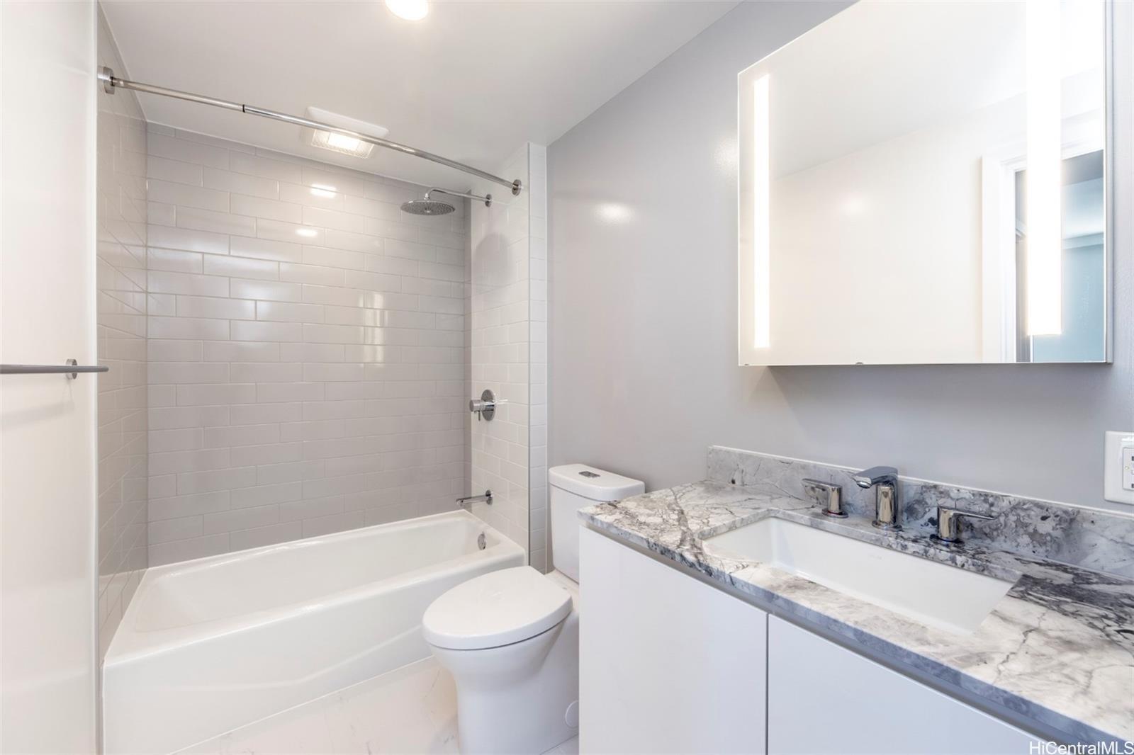 A’alii is centrally located in Ward Village close to Whole Foods and other food and commercial establishments. Short walking distance to Ala Moana Beach Park for your recreational needs. This preferred “02 Stack” Diamond Head side corner condo has never been occupied; almost brand new! Physical layout of this desirable high floor unit with 2 bedrooms and 2 full baths is well organized for the convenience of occupants in mind. Bosch appliances, natural stone counter tops, window shades, two closet systems and more. Excellent amenities are among the benefits which enhance the living quality. Priced to sell with special storage! This storage unit is located right next to the #3702 main entrance (see photos); separate door and owner purchased separately. Plus, exceptionally convenient parking stalls; one stall located on the 2nd level at the garage entrance. The second stall also located on the 2nd level with additional storage. MUST SEE!!
