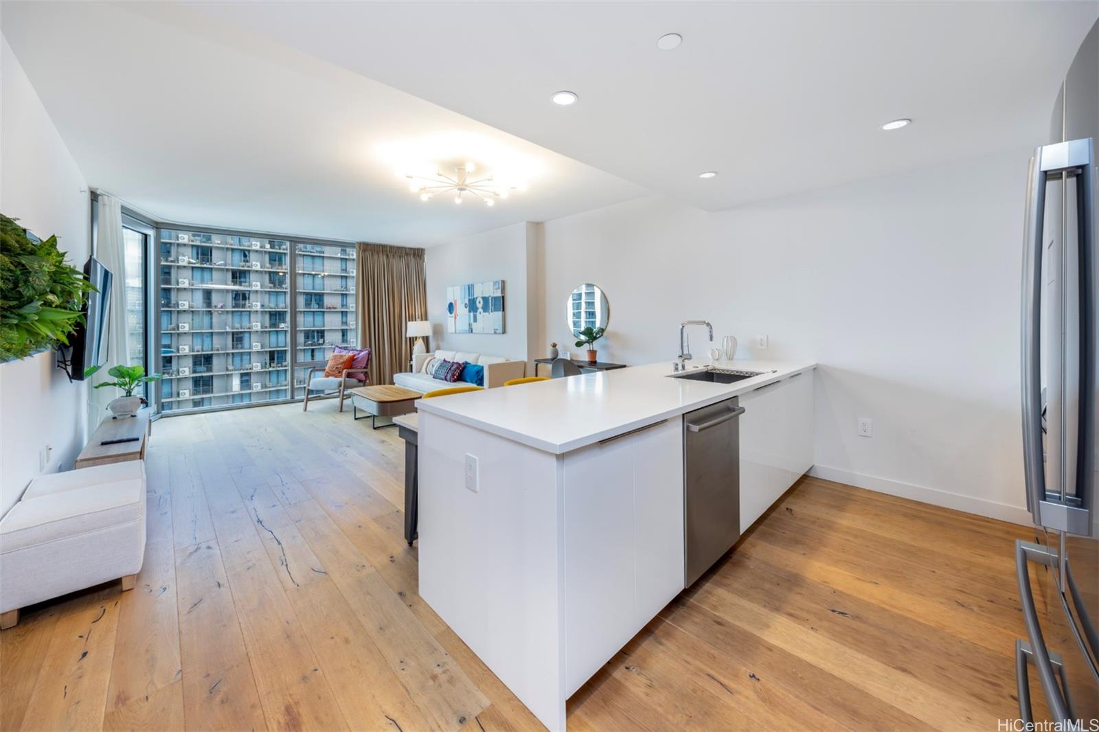 受賞歴のある総合開発コミュニティ内にある、ホノルルの新しい高級住宅の一つ、「ウォード・ビレッジ」の「Ae’o」をご覧ください。 高層階にあるこの1ベッドルーム・1バスルームのプランは、明るく開放感のあるメインリビングエリアを備え、太平洋とクーラウ山の一部を望むことができます。 寝室からは太平洋と山々の景色が一部望め、ウォークインクローゼットも備わっています。 デザイナーズバスルームは、モダンなデザインが特徴で、ダブル洗面台と深めのバスタブが備わっています。 Ae’oには、複数のプール、バーベキューエリア、フィットネスジム、キッズプレイエリア、レクリエーションスペース、シアタールームに加え、最上階にある象徴的なオーシャンビューのスカイテラスなど、リゾートスタイルの充実した設備が揃っています。 絶好のロケーションにあり、旗艦店のホールフーズ・マーケットがすぐそばにあり、アラモアナ・ビーチ・パークの砂浜や近隣のショップ、カジュアルな飲食店から高級レストラン、エンターテインメント施設など、あらゆる施設が徒歩圏内に揃っています。 Ae’oで、ハワイならではの「ワーク・プレイ・ライブ」なライフスタイルをお楽しみください。 掲載内容には、加工・バーチャルステージングを施した写真や、拡大写真が含まれています。 .