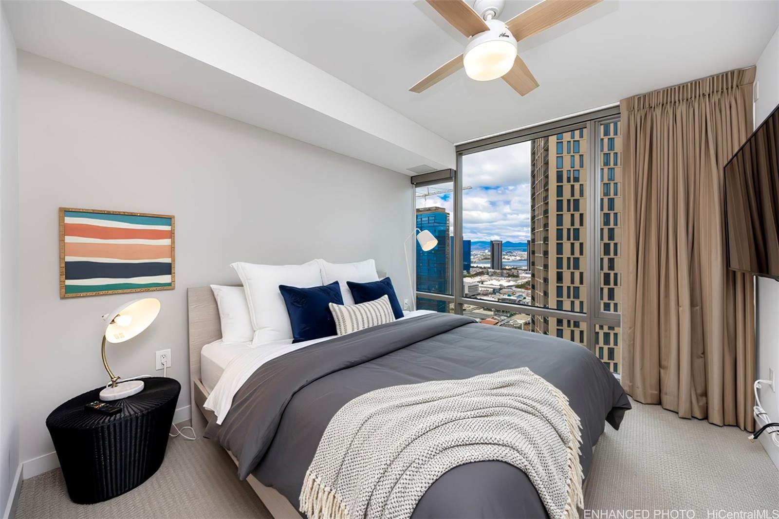 Discover Ae’o at Ward Village, one of Honolulu’s newer luxury residences in an award-winning master planned community. This high-floor 1 bedroom, 1 bathroom floor plan offers a bright, open-concept primary living area with partial Pacific Ocean and Koolau Mountain views. The bedroom space also enjoys partial Pacific Ocean and Mountain views and includes a walk-in closet. A designer bathroom features a modern design with a double vanity and a soaking tub. Ae’o features a full-suite of resort-style amenities including multiple swimming pools, barbecue areas, exercise gym, kid’s play area, recreation spaces, theater room, and an iconic ocean view sky terrace on the top level. Its superb location puts you alongside a flagship Whole Foods, blocks from sandy beaches at Ala Moana Beach Park, nearby shops, casual and fine-dining, entertainment, and much more. Enjoy Hawaii’s “Work, Play, Live” lifestyle at Ae’o. Listing includes enhanced, virtually staged and zoomed-in photos.