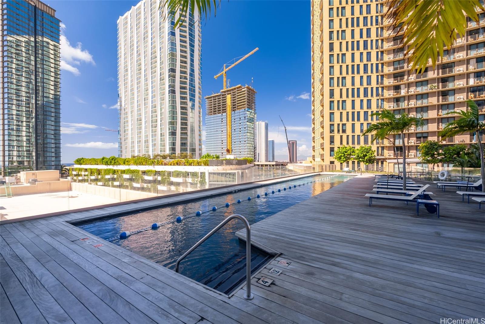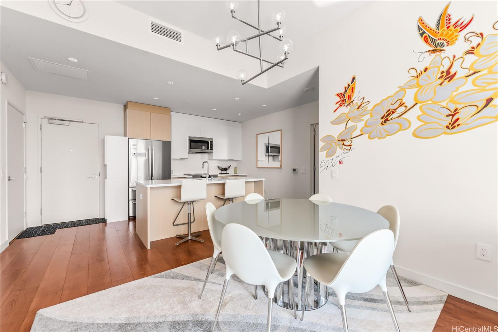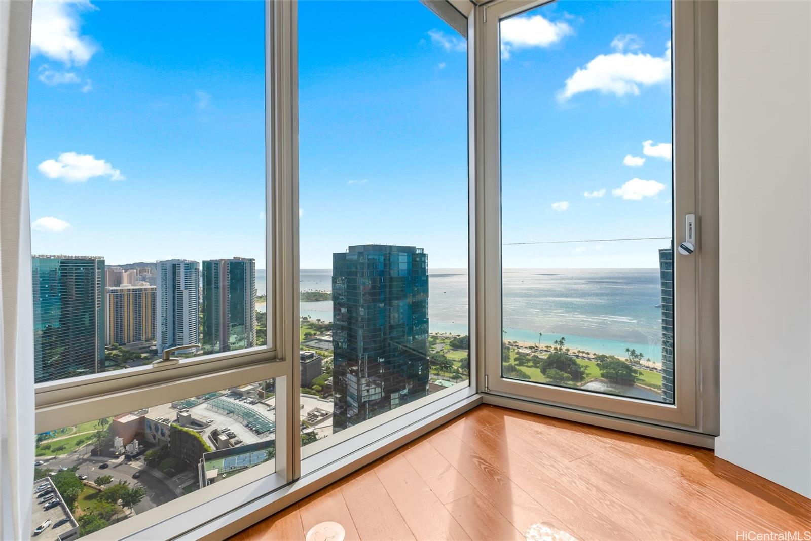 BEST VALUE & LARGEST 2-Bedroom 08-Stack Penthouse-Level Residence in Ae’o. Located on the preferred Diamond Head side, this penthouse-level home offers PH higher ceilings and a noticeably more open, premium feel. One of only a limited number of 2-bedroom residences built at 1,092 sq ft, #3908 provides meaningfully more living space than other penthouse 2BR offerings currently on the market. Floor-to-ceiling windows frame ocean, coastline, city, mountain, and sunrise views while capturing cool tradewinds and balanced natural light throughout the day. The well-designed split-bedroom layout features a contemporary kitchen, quartz countertops, and Bosch appliances, along with quality wood flooring throughout living areas and bedrooms, motorized window drapes, Toto washlets, and central A/C. Two parking stalls, featuring a secure mezzanine stall and a convenient fourth-floor stall, plus a large deeded storage room nearby. Ae’o offers resort-style amenities, pet-friendly, and direct private access to Whole Foods, all in the heart of Ward Village near Ala Moana Beach Park, shopping, dining, and entertainment.