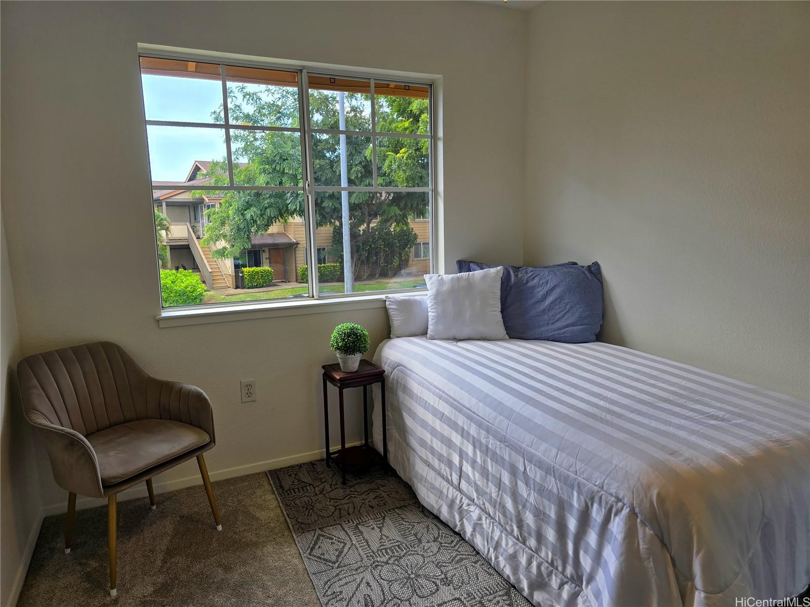 Attractive two level upper corner unit with an enclosed paved courtyard below and a 3 bedroom 2 bath unit above. Plenty of additional storage space in the attic. Lots of natural light with views of the park and garden across the street. Two assigned parking stalls in addition to ample street and guest parking spaces. New flooring, paint, appliances and fixtures were installed prior to tenant occupancy in May 2025. Tenant on lease until May 31, 2026. Residents are members of the Villages of Kapolei Community Association with exclusive use of pool and recreation facilities.