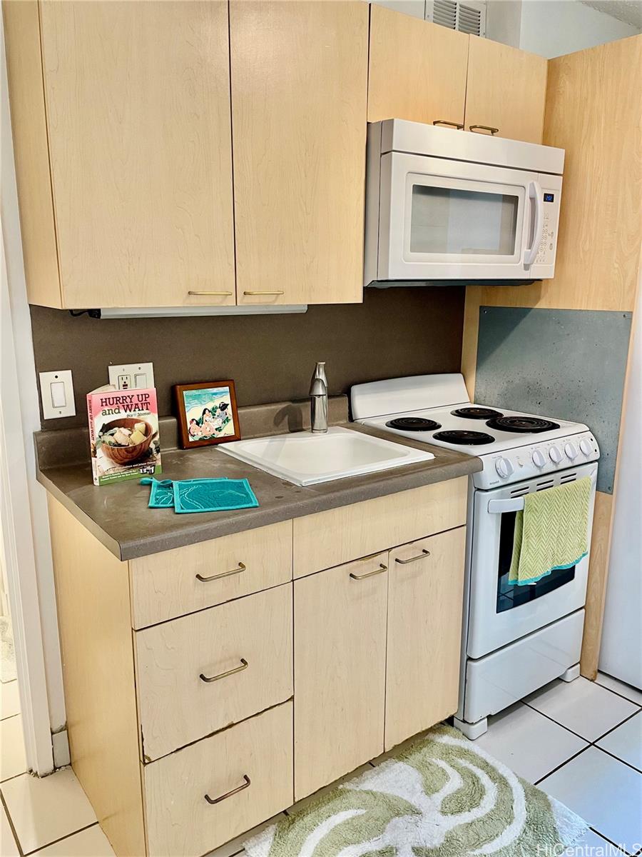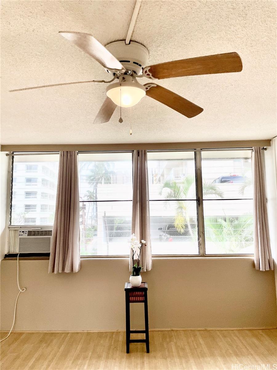 Move right in to this clean, freshly painted studio unit with a full kitchen. No one lives above this unit. What a bonus to have an assigned, covered parking stall in Waikiki! Secured bldg. with an elevator. Amenities include an on-site resident manager, surfboard rack, bike rack and motorcycle or moped designated parking area. Convenient community laundry on every floor. Close to beaches, bus line, schools, shopping, eateries, entertainment and more. Truly a hidden gem. Don’t miss out on this unique opportunity to own a piece of paradise! Sorry, no pets are allowed.