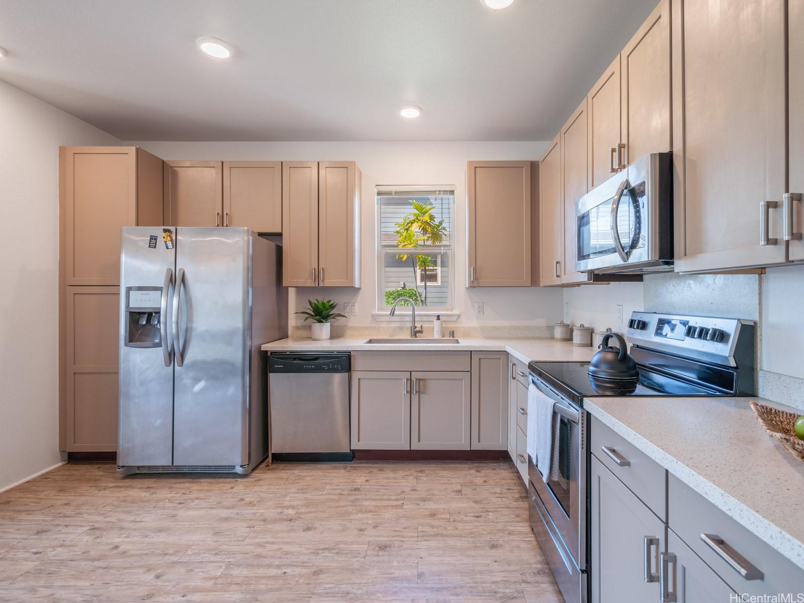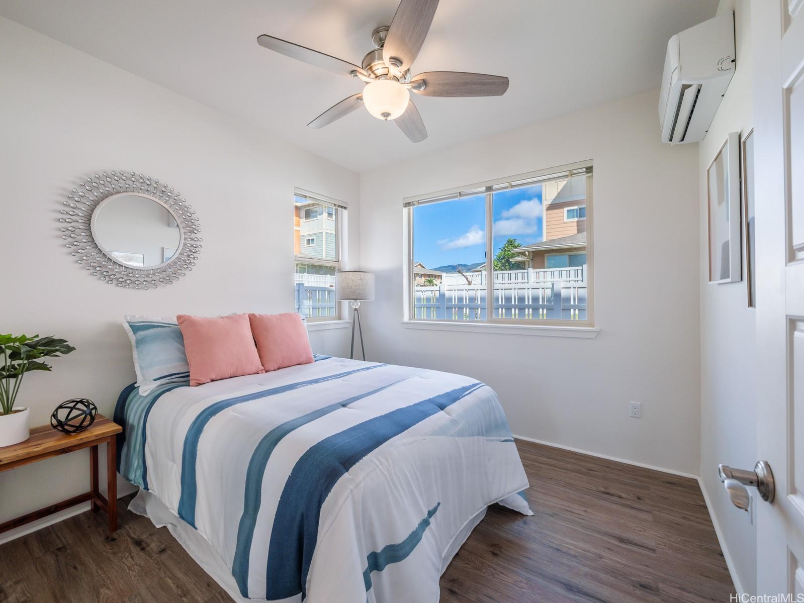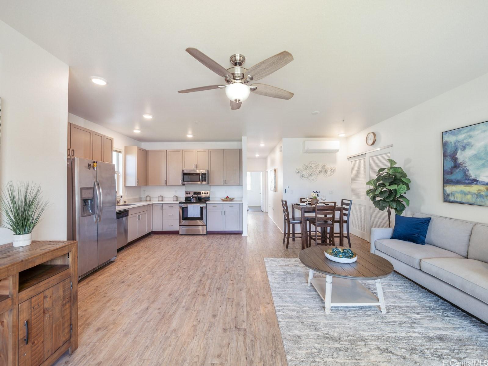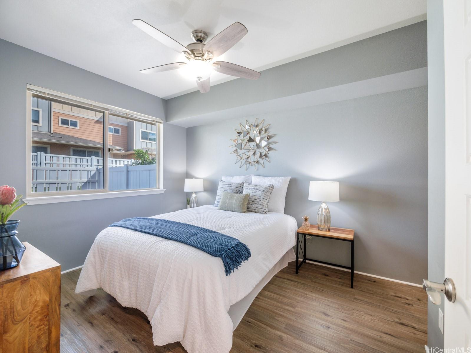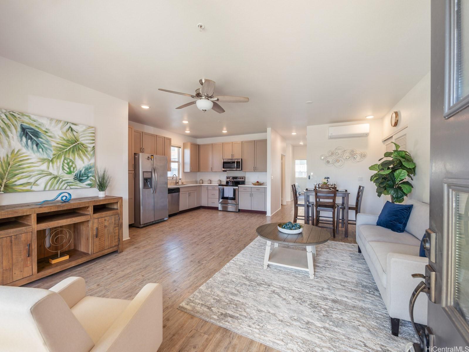 VA assumable loan, 3% rate and small gap!Welcome to this charming 2-bedroom 2-bath single level townhome nestled in a vibrant community of Ho’opili. The open floor plan seamlessly connects the living room, dining, and kitchen areas providing an ideal layout for both relaxation and entertaining. The well appointed kitchen features modern appliances, plenty of counter space and ample storage making meal preparation a breeze. Retreat to the spacious primary bedroom complete with a private en-suite bathroom and walk-in closet for added convenience and privacy. The second bedroom offers flexibility for guests, a home office, or whatever suits your lifestyle needs. Outside, you will find your own private fenced in yard, a perfect place for your furry friend or fun kids play space. All this just minutes away from all conveniences such as a rail, UH West campus, Ka Makana Ali’i mall, stores, restaurants, beach and so much more. Come see it today!