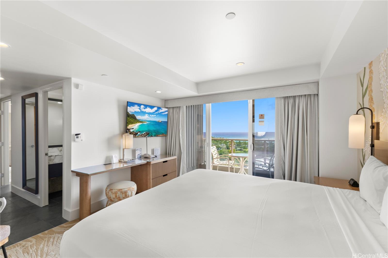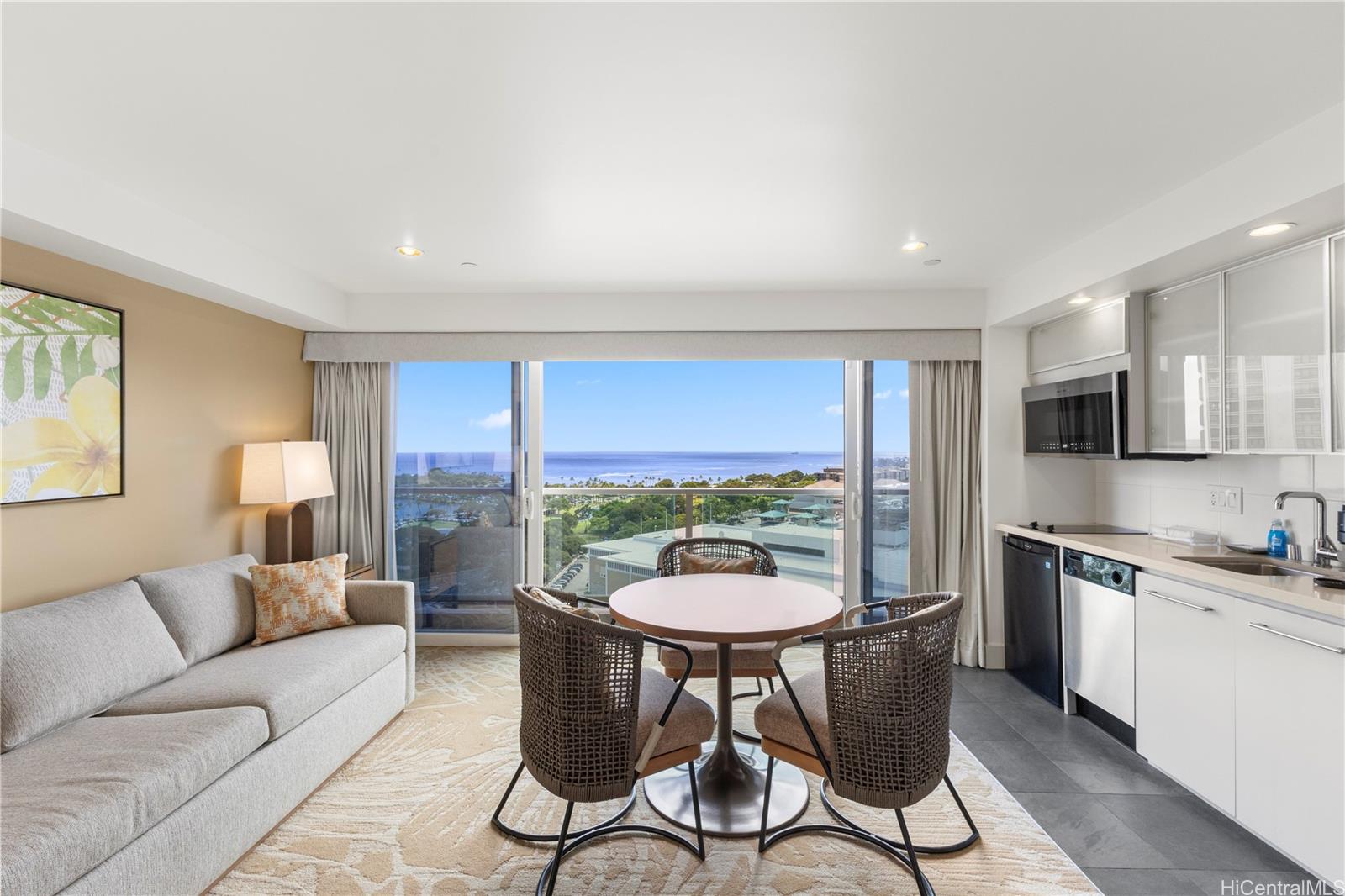 Experience elevated island living in this 17th-floor 1-bedroom residence at the Ala Moana Hotel Condo, showcasing beautiful ocean views and a seamless blend of indoor and outdoor comfort. The spacious living area features sliding doors that open to create a breezy, open-air ambiance, while the bedroom extends to a private lanai overlooking the coastline. With direct connection to Ala Moana Center, this residence offers convenient access to beaches, dining, shopping, and entertainment. Enjoy resort-style amenities including a recently updated pool area, state-of-the-art fitness center with sauna, on-site dining options including the signature rooftop steakhouse, meeting facilities, and complimentary Wi-Fi. Whether used as a personal retreat or a turnkey vacation rental, this property offers a rare combination of comfort, style, and location in the heart of Honolulu.