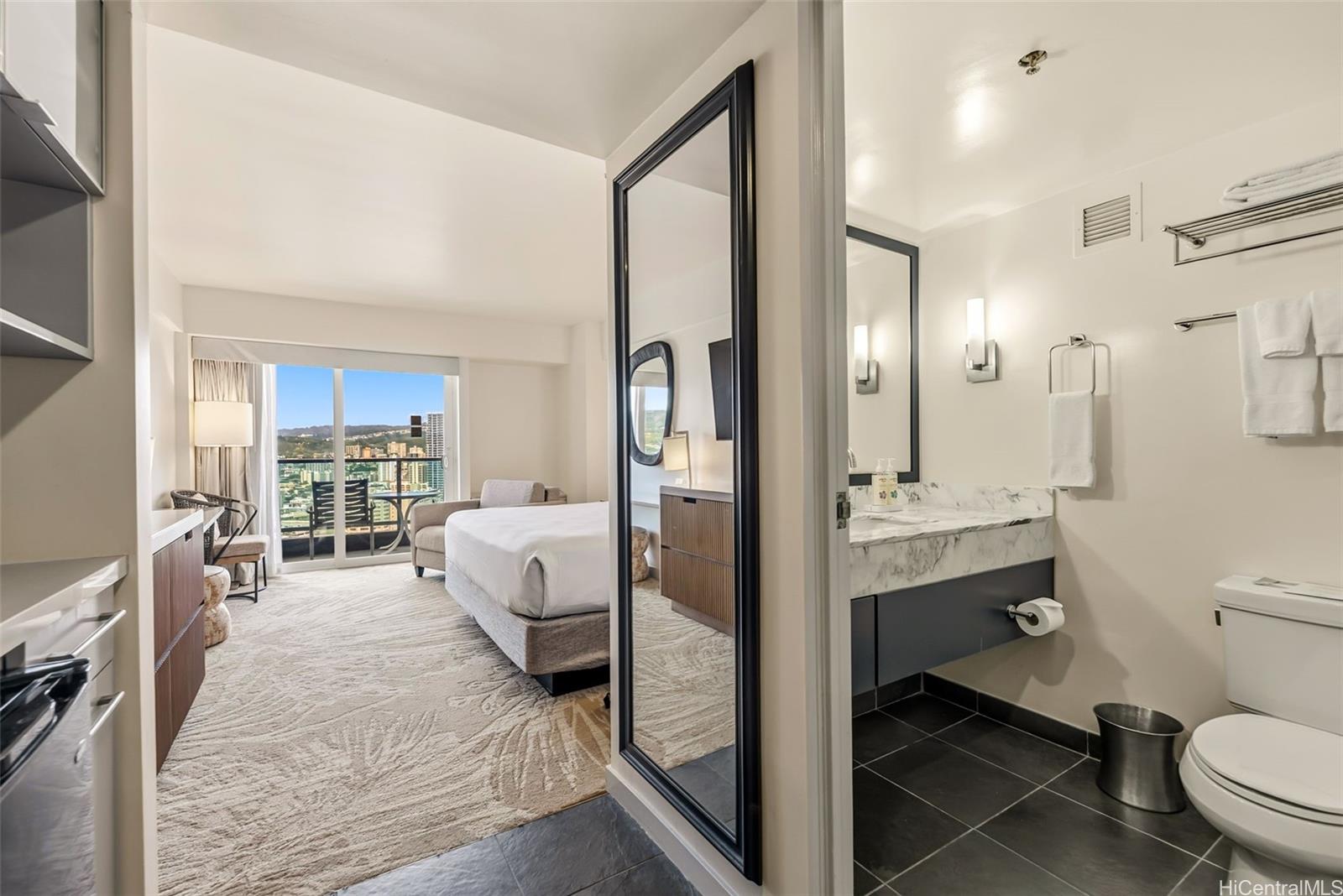 High floor unit with sweeping ocean, city and mountain view! Great opportunity to own a turn key investment property in Hawaii. This unit is managed by Ala Moana Hotel by Mantra, very popular Island-style condotel. Unit features are remodeled interior in 2025, new furniture, sweeping view from Lanai. Relax by the outdoor swimming pool with a spacious deck for sunning and get refreshed in the fitness center and sauna. Hotel features are cafes and restaurants, gift shops, tours and activities desk, valet parking, concierge service. Great location directly connecting to Ala Moana Shopping Center and close to Hawaii Convention Center. Ala Moana Beach Park is just steps away. Owner has options to join Hotel Rental Program or self managing for short term vacation rental. Own this piece of paradise with solid investment income.
