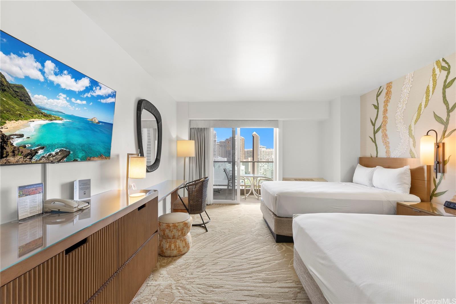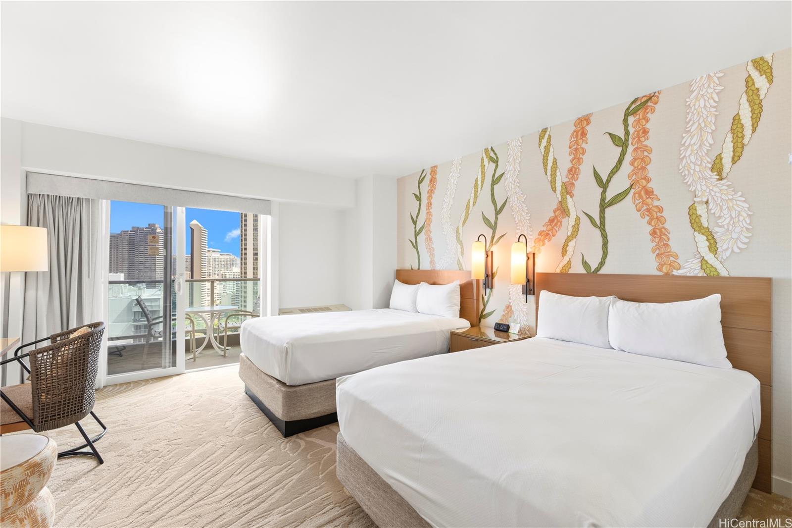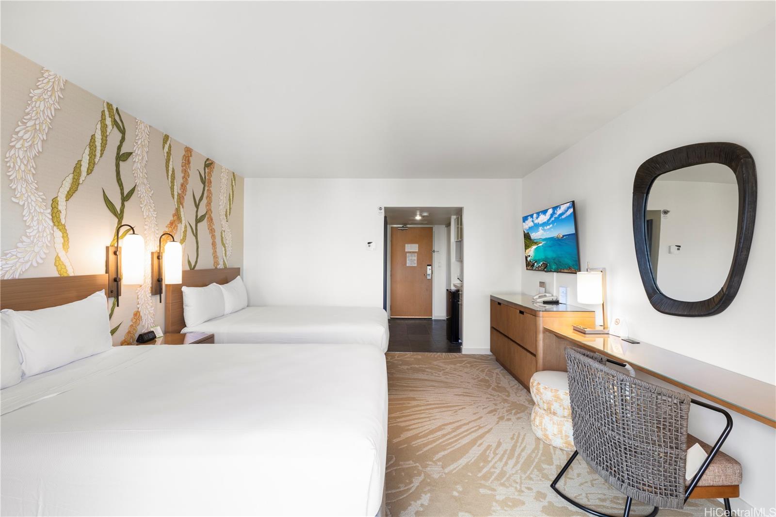 Experience island living in this high-floor studio at Ala Moana Hotel, featuring two full beds, a full bath, and a private lanai with captivating ocean views. The unit includes a mini-fridge for added convenience, making it perfect for personal getaways or as part of a vacation rental program. Owners and guests enjoy access to resort-style amenities such as a sparkling pool, fitness center with sauna, on-site dining, meeting facilities, and complimentary Wi-Fi. Ideally located near Ala Moana Center, Ala Moana Beach Park, the Hawaii Convention Center, and a variety of shopping, dining, and entertainment options, this property offers both relaxation and connection to what Honolulu has to offer.