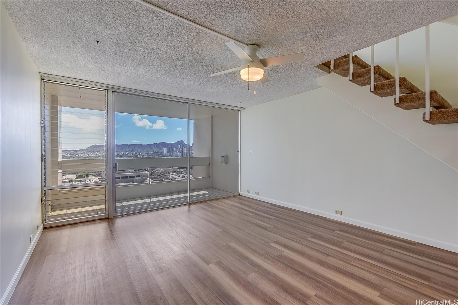 This is a great opportunity to own a spacious and bright 1-bedroom, 1-bath unit with expansive views of Diamond Head, the Waikiki skyline and Ala Wai Golf Course. The interior is in need of some updates and TLC, presenting the perfect chance to add value and make it your own. This split-level floor plan allows for easy entertaining. New UV tint on floor to ceiling windows. All jalousie windows are being upgraded and replaced. Includes one assigned covered parking space. The Ala Wai Plaza Skyrise is a well maintained building with modernized elevators, guest parking, car wash area, salt-water pool, BBQ, storage, 24-hour security and a site manager. The plumbing retrofit project has been completed. Conveniently located for freeway access, the University of Hawaii, and Waikiki. Sold as is.