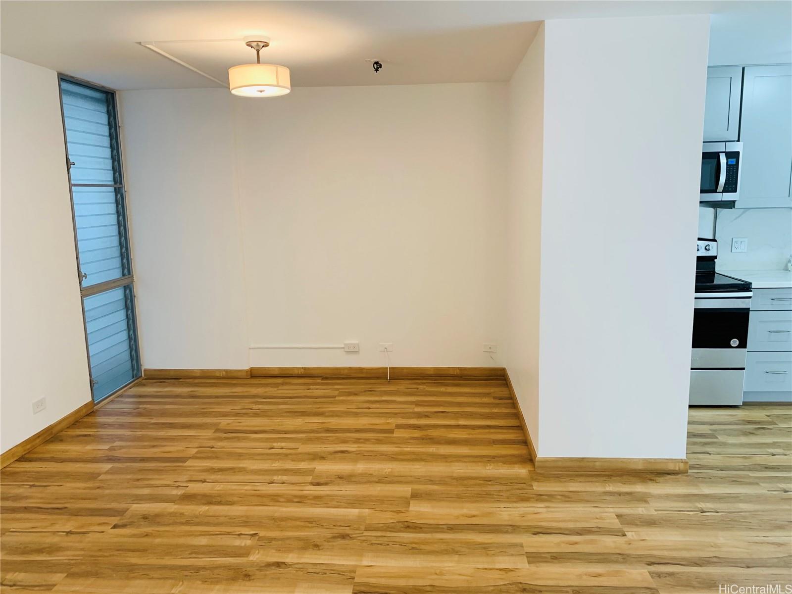 Recently renovated 2 bedroom 1 bath with 1 partial covered, secured parking. Upgraded interior includes vinyl plank flooring, quartz countertops, newer cabinetry and appliances, newer fixtures, enclosed lanai and washer/dryer in the unit. Excellent opportunity for the first time buyer looking for a convenient town location with easy access to UH, freeways, bus stops, shopping, restaurants, Kapiolani Hospital and more. Well managed building with fire sprinkler systems and alarms. Secure building with a swimming pool, recreation area and guest parking. Seller paid full assessment for recent electrical upgrades.
