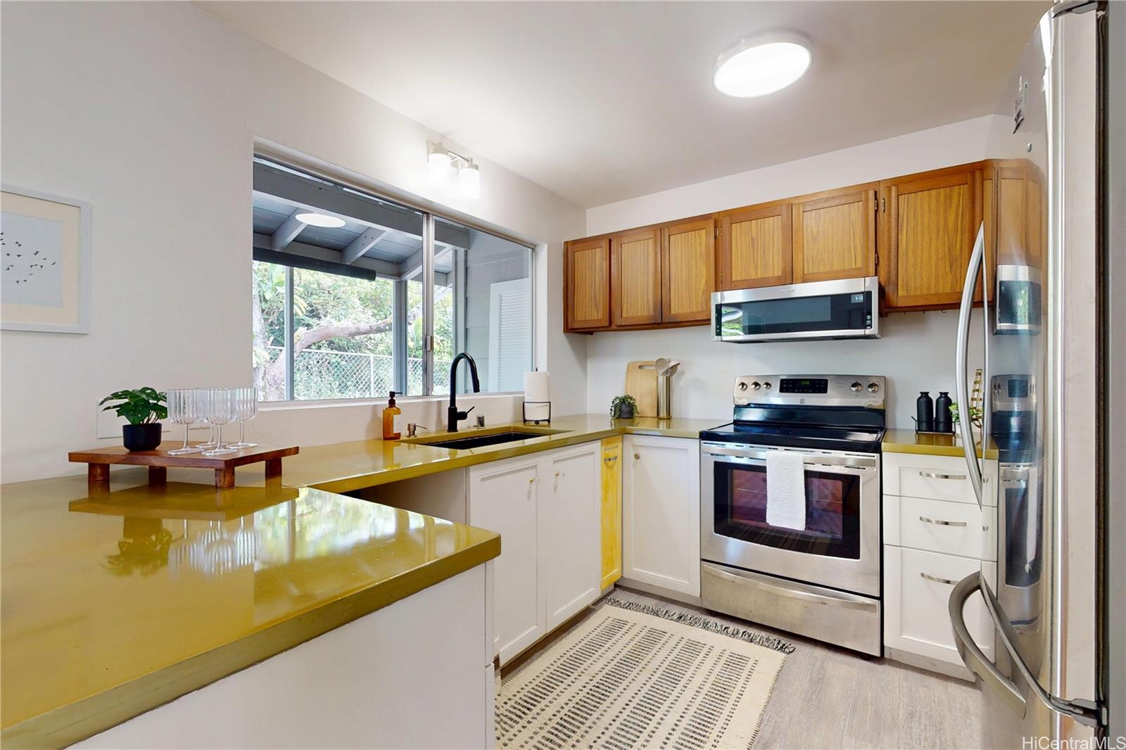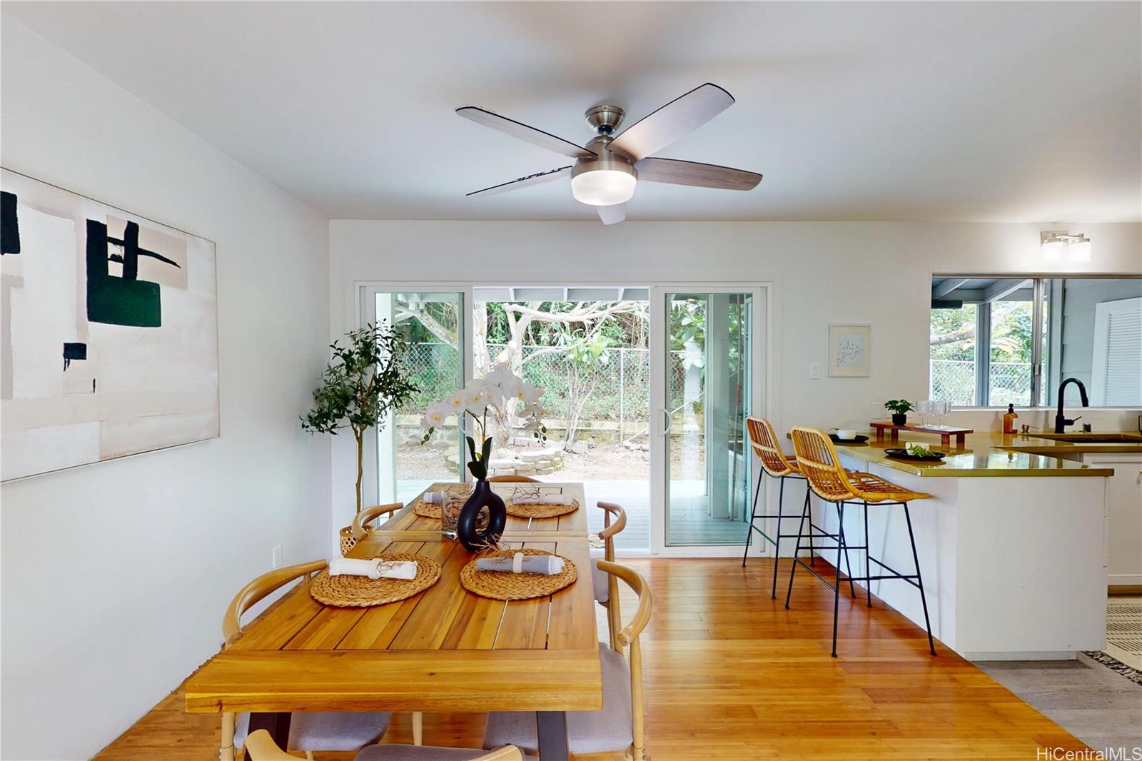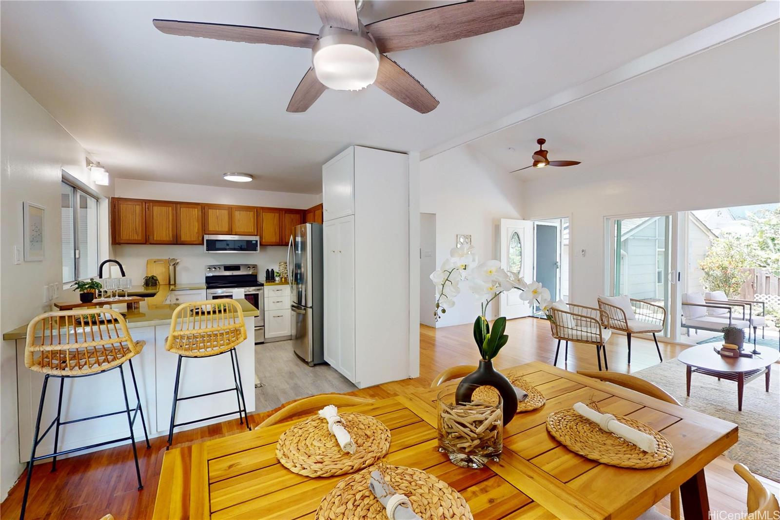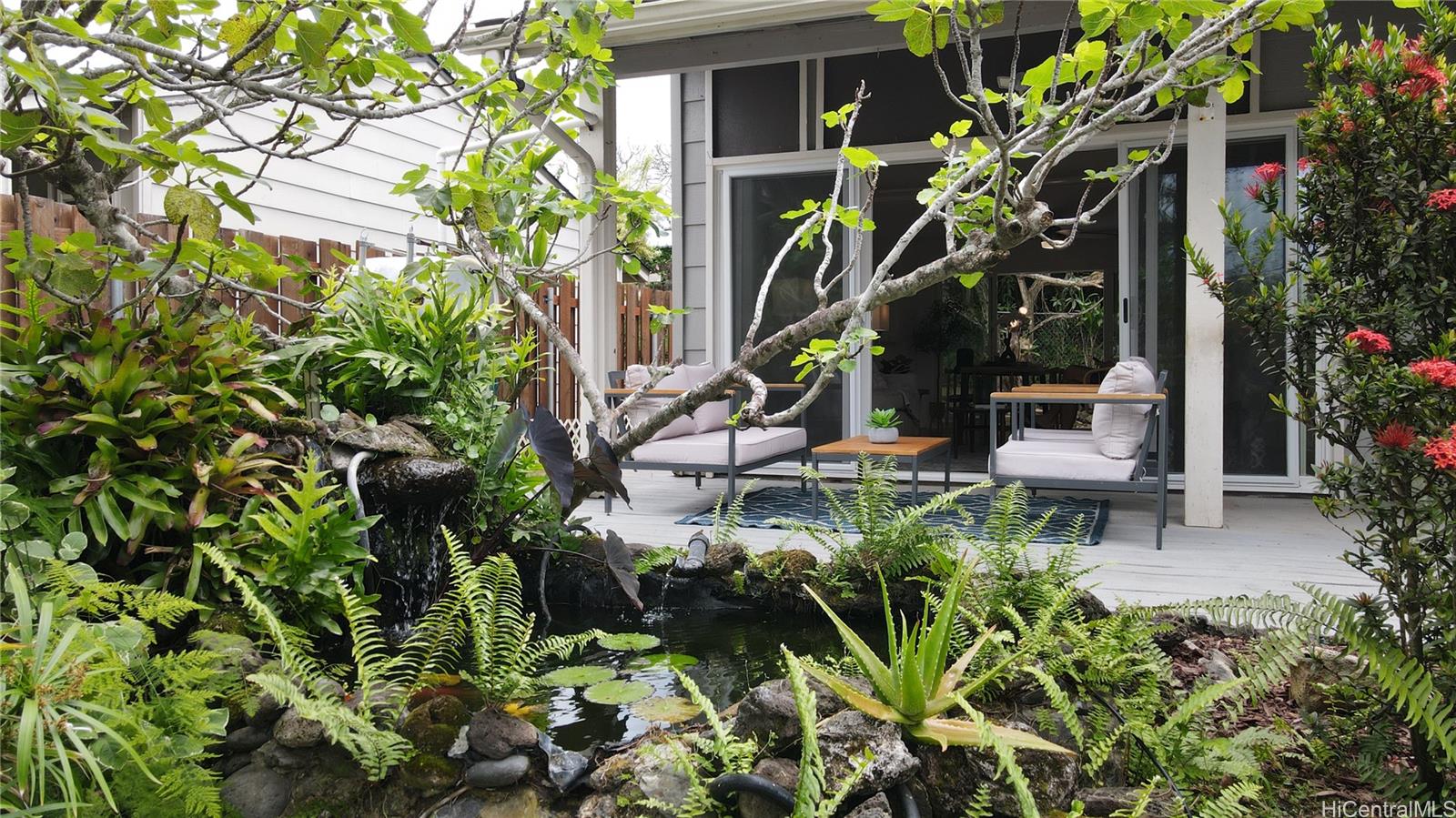 Your secluded and private Kaneohe oasis awaits! This charming 3-bedroom, 2-full bathroom home is comfortable and spacious. Experience the calming tranquility of the property’s Koi Pond from the front lanai/deck with views of the majestic Koolau Mountains beyond; it’s great for entertaining or just relaxing. The property is fenced/gated for privacy & security. The detached two-car garage is where the washer, dryer and utility sink are located and offers ample room for storage. Recent 2026 renovations include new electrical switches and outlets, popcorn ceilings removed, and a fresh coat of interior paint throughout. Additional features include vaulted ceiling, leased 19 panel photovoltaic system with Tesla battery (Sunrun), and solar hot water heater system. While it’s move-in-ready, there are still opportunities for new owners to apply their personal touches and make improvements. It’s in close proximity to Kaneohe amenities like shopping, dining, schools, Heeia Kea Pier, Kaneohe Bay, and more.