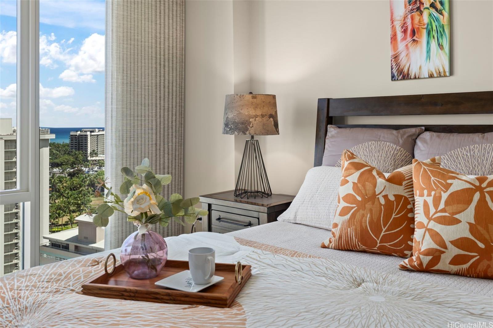 Big Price improvement! Motivated Sellers will consider all reasonable offers. Enjoy the Waikiki resort lifestyle at Allure! FULLY FURNISHED residence boasts granite counters, Viking appliances, upgraded wood-grain ceramic tile, walk-in closet, Toto toilets, and large lanai to enjoy Diamond Head, ocean, sunrise and city views in the cool trade wind breezes. Central AC replaced in 2023 and most appliances have been replaced in the last two years. This secure pet friendly building features a welcoming grand lobby, infinity pool with poolside cabanas, spa, BBQ areas, fitness center, party room, and more. Conveniently located at the Gateway to Waikiki and just a short distance to Ala Moana Center, parks, and beaches as well as almost unlimited dining, shopping, and entertainment options that Waikiki has to offer.