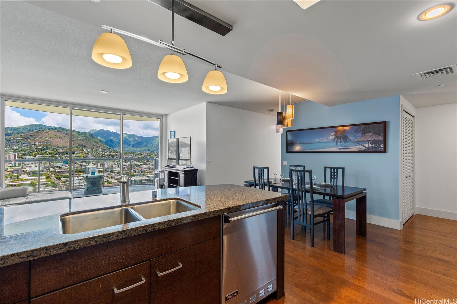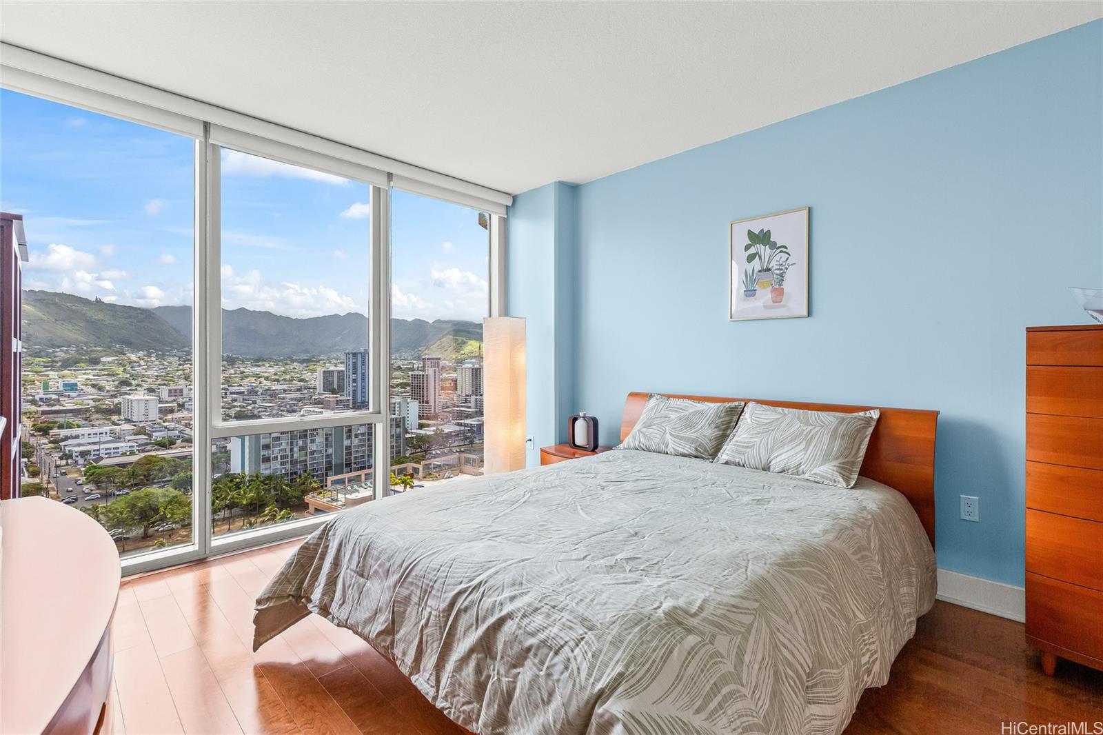This is your opportunity to own a piece of paradise in world famous Waikiki. Allure Waikiki offers the perfect blend of luxury and comfort. This quite 2-bedroom/2-bathroom unit offers gorgeous mountain and city views from the living room and both bedrooms. An open concept kitchen ideal for entertaining guests while cooking a gourmet meal. This kitchen is fully equipped with high-end stainless steel Viking stove, dishwasher, lots of cabinet space and quartz countertops. new washer & dryer, new fridge. This lovely condo also features floor-to-ceiling windows that truly captures the beauty of Hawaii, polished hardwood flooring throughout the unit complemented by tile flooring in both bathrooms. The primary bedroom gives that true resort feel with an incredible mountain view and primary bathroom with double vanity & separate shower room with a deep soaking tub. Upgraded lanai tile flooring. 5-Star resort-style amenities: a pool & jacuzzi, fitness center, BBQ area, and 24/7 security. Pet friendly-up to 25lb dog. Situated in the heart of Honolulu, Easy access to world-class shopping, dining, and entertainment. Just a short walk away from Ala Moana Center and Waikiki Beach.