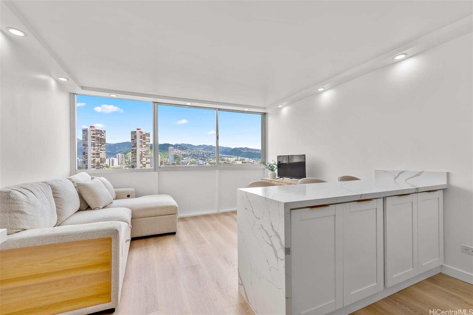 Fully renovated and move in ready, this upgraded 1 bedroom 1 bath residence at Aloha Lani offers exceptional value in the heart of Waikiki. The unit was taken down to its base condition and thoughtfully rebuilt with quality finishes and modern upgrades throughout.Features include luxury vinyl flooring, quartz countertops, custom cabinetry, updated kitchen and bathroom, recessed lighting, new AC, tankless water heater, and modern fixtures. Clean functional layout with a bright and comfortable living space. Includes one covered parking stall and a rare large private storage cabinet located just outside the unit, a valuable bonus not commonly found in the building. Aloha Lani offers 24 hour security, pool, jacuzzi, sauna, BBQ area, and recreation deck. Conveniently located near Waikiki beaches, shopping, and dining. 30 day minimum rentals allowed buyer to verify. A turnkey opportunity that stands out in condition and overall value.