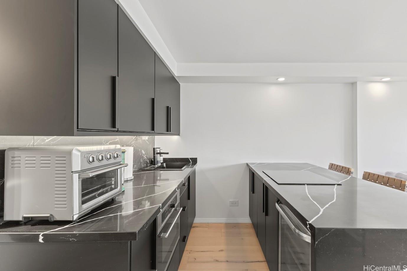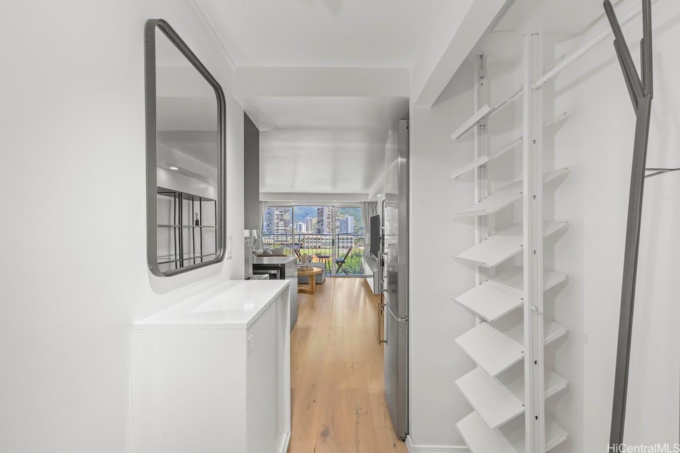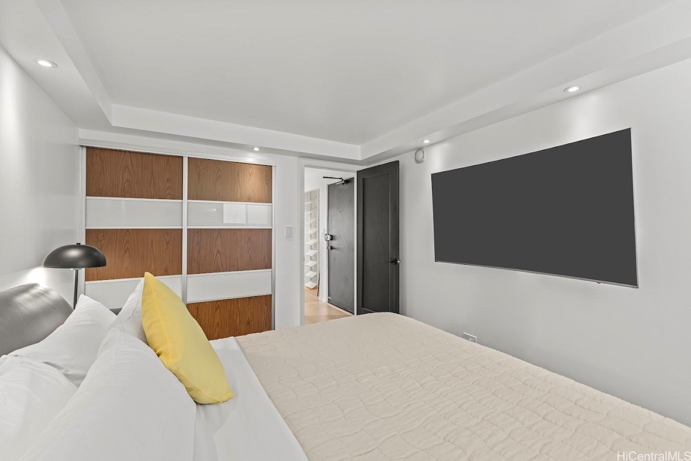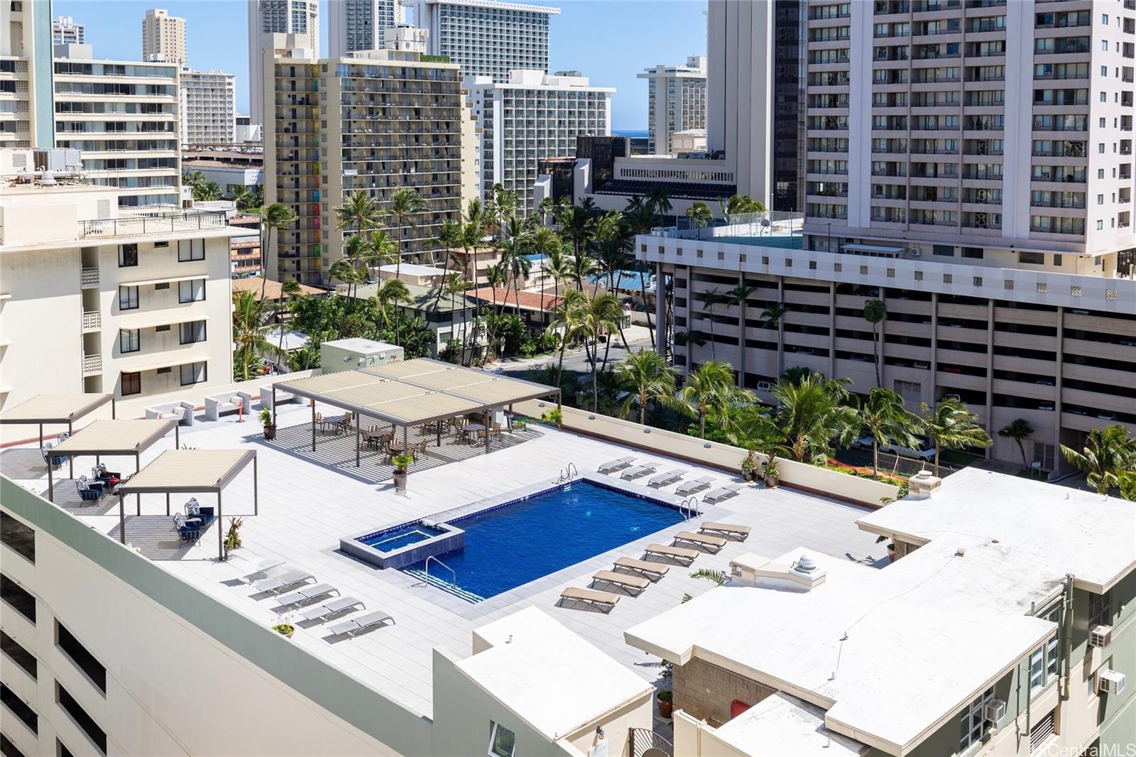 Extra larger unit with premier custom remodeled. 100% insured building this beautifully updated, fully furnished unit offers stunning, unobstructed canal and mountain views. With an extended living room featuring maple hardwood floors and a chef’s kitchen with quartz countertops, induction cooktop, wine cooler, and built-in appliances, this space is both stylish and functional. Split AC in the living room and window AC in the bedroom ensure year-round comfort. Freshly painted and in excellent condition, it includes one assigned covered parking and additional storage. Located in the heart of Waikiki, Aloha Lani provides easy access to shopping, dining, and entertainment. The building boasts a newly upgraded pool, deck, BBQ areas, 24/7 security, and amenities including a gym, sauna, community laundry, and game room. This is a fantastic opportunity for your own private retreat. Pet-friendly (please verify with the association). This is a rare chance to own your own private retreat and enjoy all that world famous Waikiki has to offered. Tax assessment is based on 2024. Unit has been rented out for 30 day rental min around 3000/month previously prior to Sep 2025.