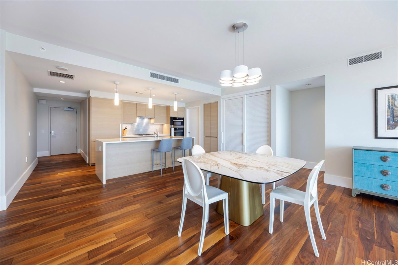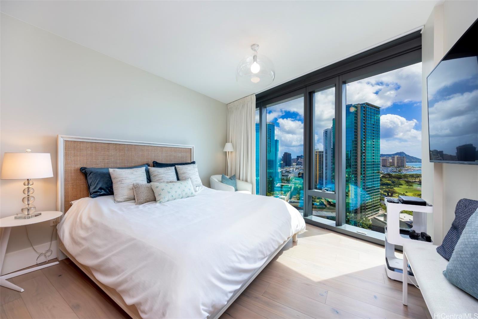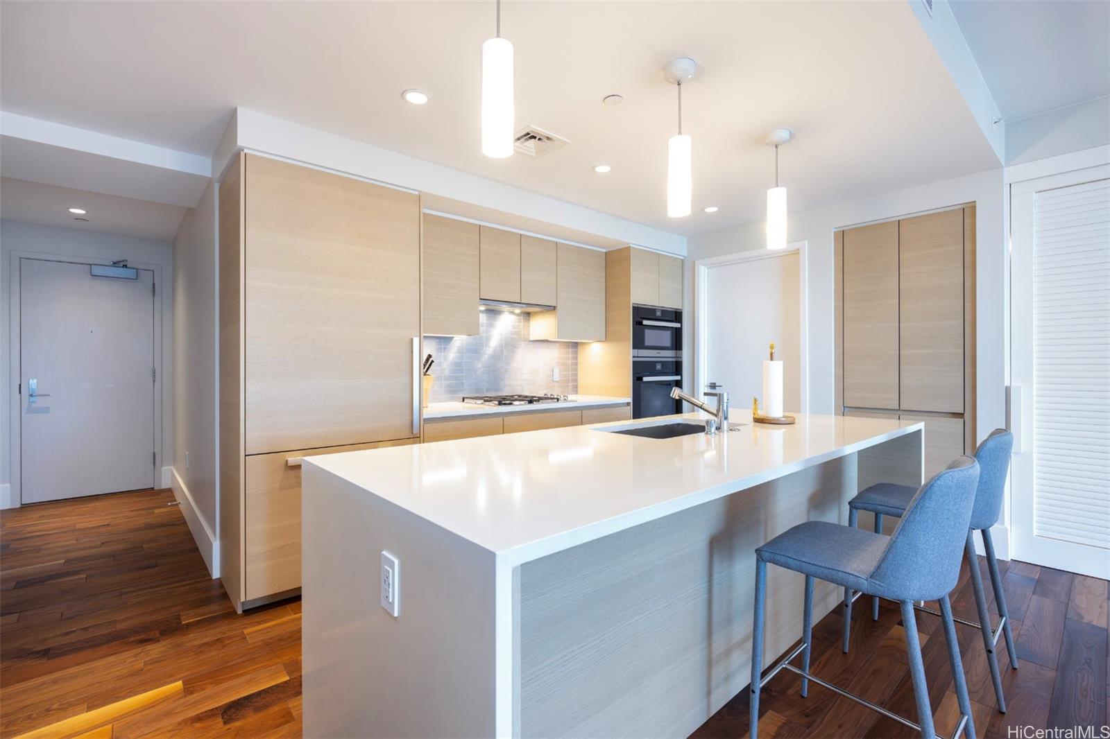アイランド・ラグジュアリー・リビング:アナハ #2202 は、ダイヤモンドヘッドを望む住居であり、卓越したモダンデザインと洗練された雰囲気を提供します。 この1,691平方フィートの建物に足を踏み入れると フィート この住宅は、2ベッドルーム+書斎という優れた間取りを誇り、リビングエリアと両ベッドルームからは、ダイヤモンドヘッド、太平洋、アラモアナビーチパークの息をのむようなパノラマビューが広がっています。 メインの居住空間の中心となる、デザイナーズブランドのミーレ製家電を備えた高級グルメキッチンとビルトインのバーカウンター席が、広々としたオープンコンセプトのリビングエリアへとシームレスに繋がっています。 プライマリースイートへ退避すれば、リゾートスタイルの専用バスルームが待っています。ダブル洗面台、深めのバスタブ、独立したウォークインシャワーに加え、特大サイズのウォークインクローゼットも完備されています。 世界クラスの設備をご利用いただけます。象徴的な張り出し構造のガラス張りのプール、カバナ、コンシェルジュサービス、フィットネスセンター、テニスコートなどが含まれます。 すぐ外には、ワード・ビレッジ、アラモアナ・センター、アラモアナ・ビーチ・パークが数ブロック圏内に位置し、ブティックショップ、有名レストラン、砂浜の海岸線が待っています。 格別なラグジュアリーな生活が待っています。これがアナハ #2202です。 .