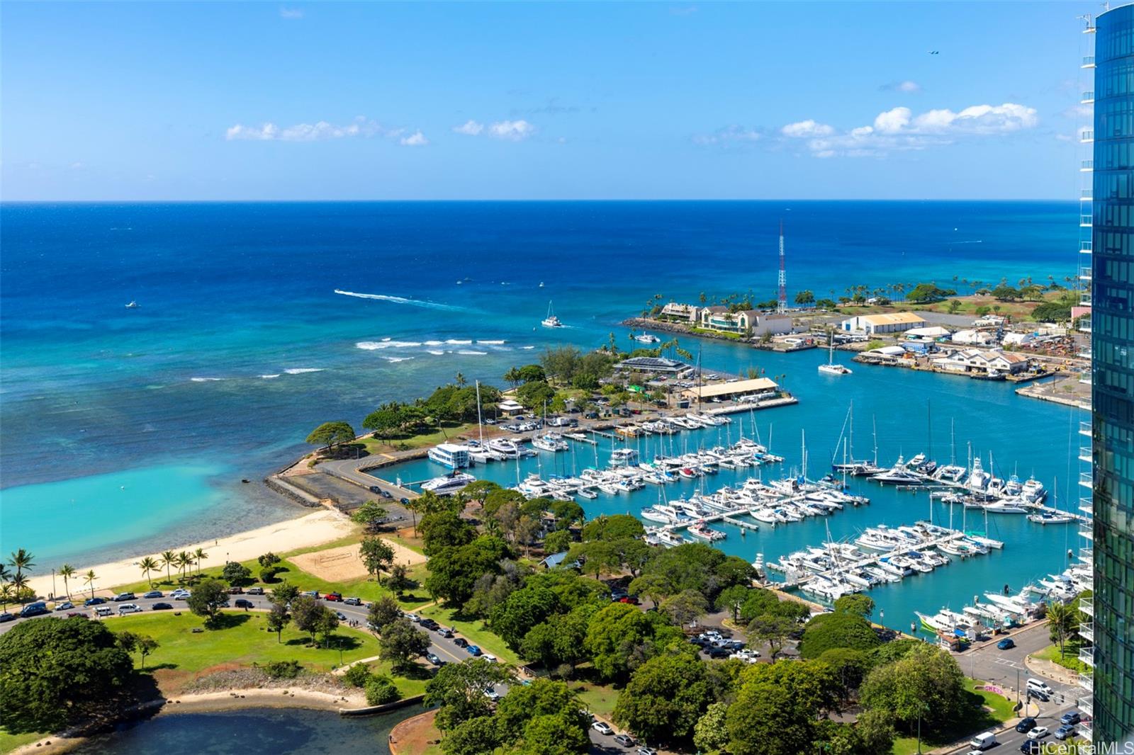 Anaha stands as one of Honolulu’s premier ultra-luxury destinations, situated in award-winning Ward Village, where nearby shops, restaurants, entertainment, & sandy beaches are within blocks. This high-floor, rarely available front-corner 3-bedroom, 3.5-bath, 2,445 sq.ft. residence sits just under the Penthouse-level & features higher ceilings, unique to the 33rd floor & Penthouse suites. Inside, panoramic floor-to-ceiling windows in the open-concept luxury living space draw in views from Diamond Head & Waikiki, to Ala Moana Beach Park & Kewalo Boat Harbor. The primary bedroom enjoys stunning Pacific Ocean & Beach Park views, & includes a large walk-in closet & resort ensuite bath. Two additional bedrooms enjoy Diamond Head & Pacific Ocean views. This residence is sold with an additional storage room & EV charger. Anaha features a host of resort amenities including an iconic infinity-edge pool with a transparent overhang, a full-size tennis court/pickleball courts, volleyball court, multiple barbecue areas, kid’s play area, golf simulation, billiards room, movie theater room, chef’s kitchen, & much more.
