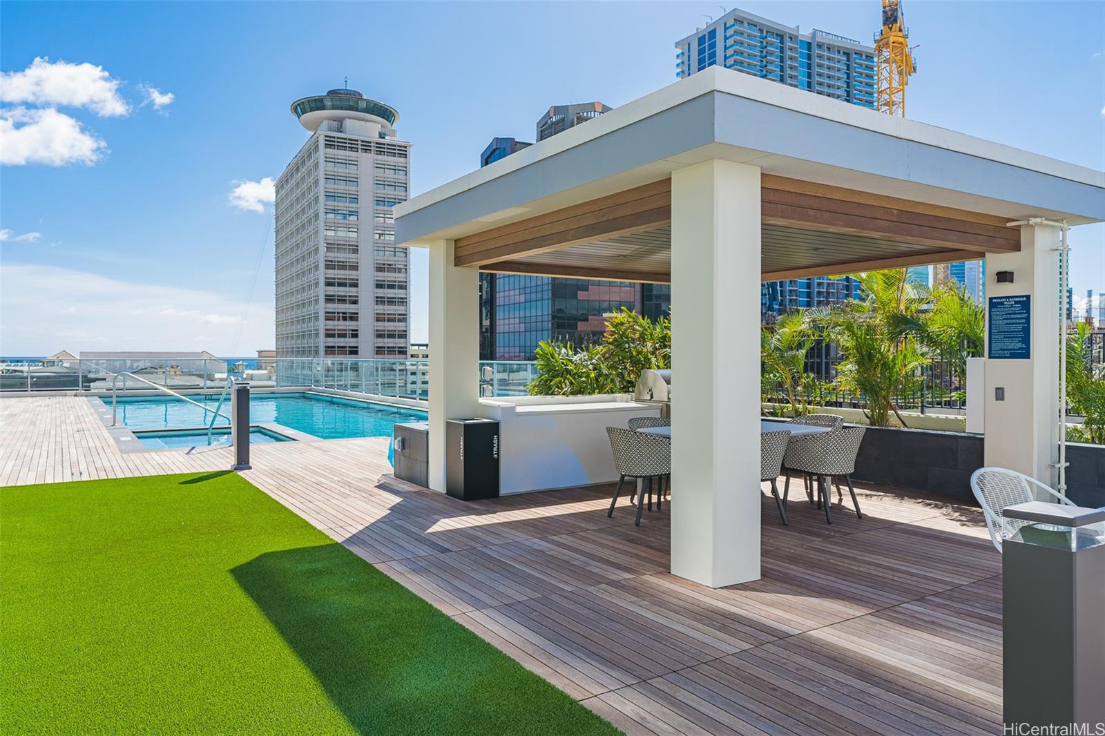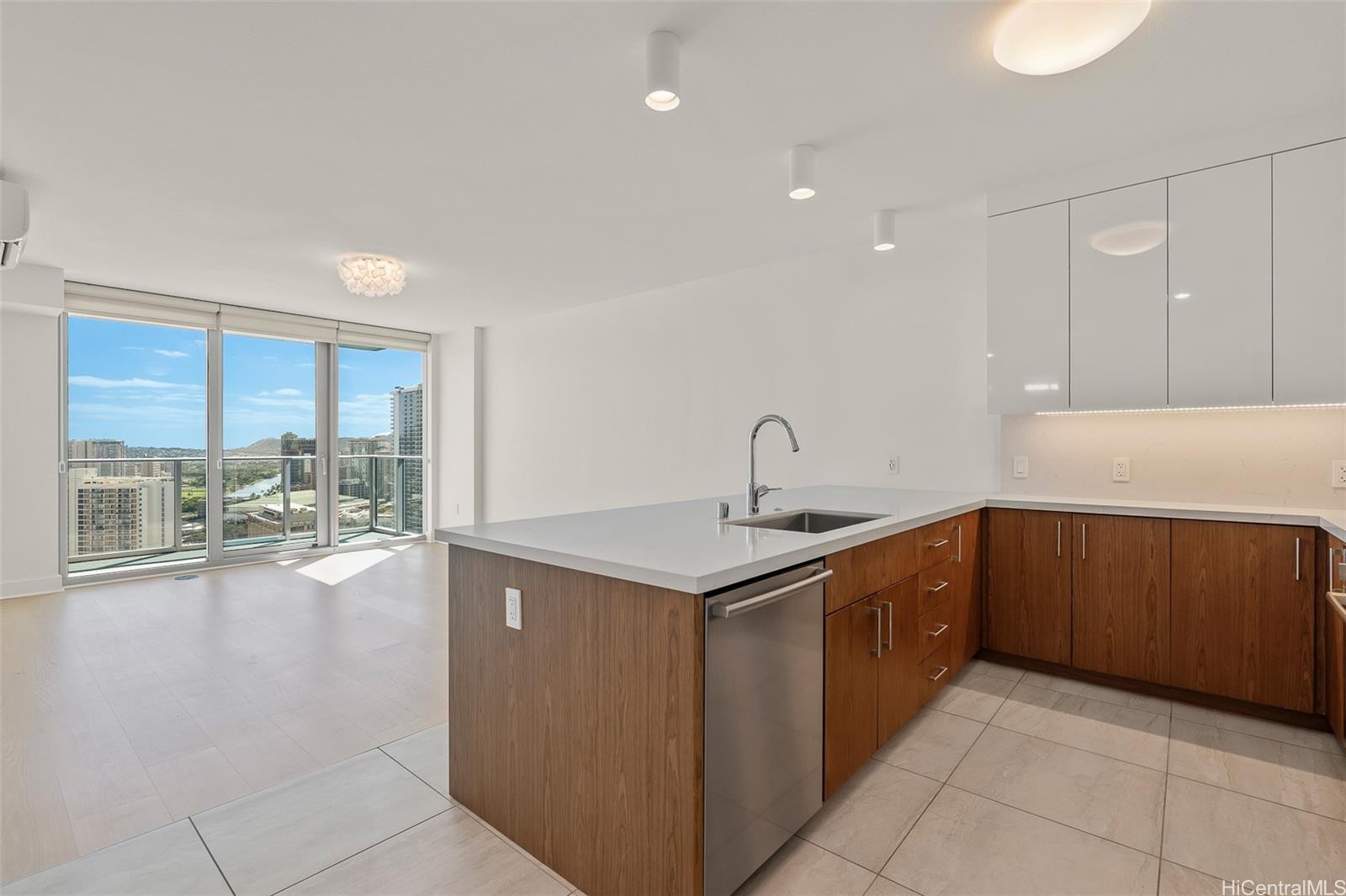 Experience elevated luxury living from the 31st floor of Azure Ala Moana. This stunning 1-bedroom, 1-bath residence features newly installed vinyl flooring and fresh interior paint, along with sleek modern finishes, floor-to-ceiling windows, and an open-concept design that fills the home with natural light and showcases breathtaking panoramic views of the Honolulu skyline and mountains. Located in the heart of Honolulu, just steps from Ala Moana Center, premier dining, shopping, and Ala Moana Beach Park, this residence offers unmatched convenience and lifestyle. Residents enjoy resort-style amenities including a swimming pool, fitness center, theater room, BBQ cabanas, club lounge, and 24-hour security. With its high-floor vantage point, sophisticated design, and prime location, this Azure Ala Moana residence perfectly blends comfort, convenience, and the beauty of island living.