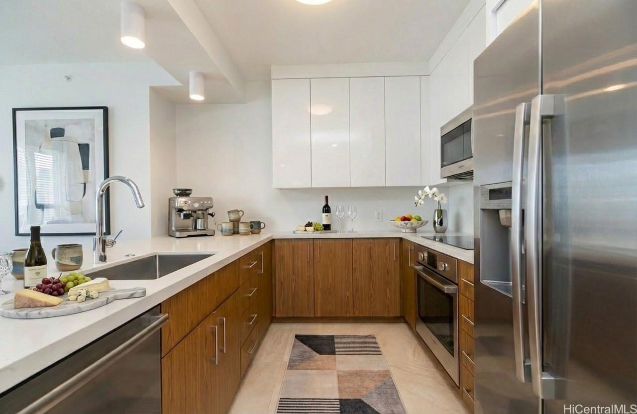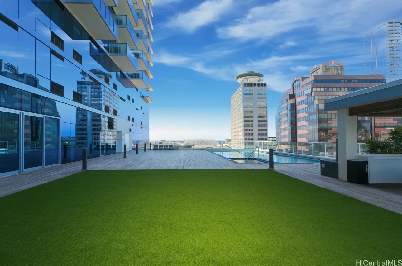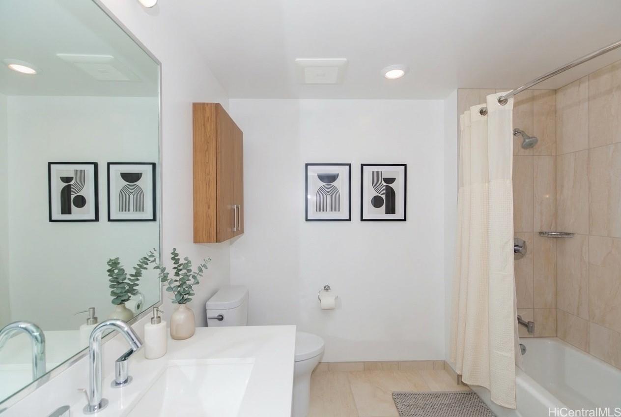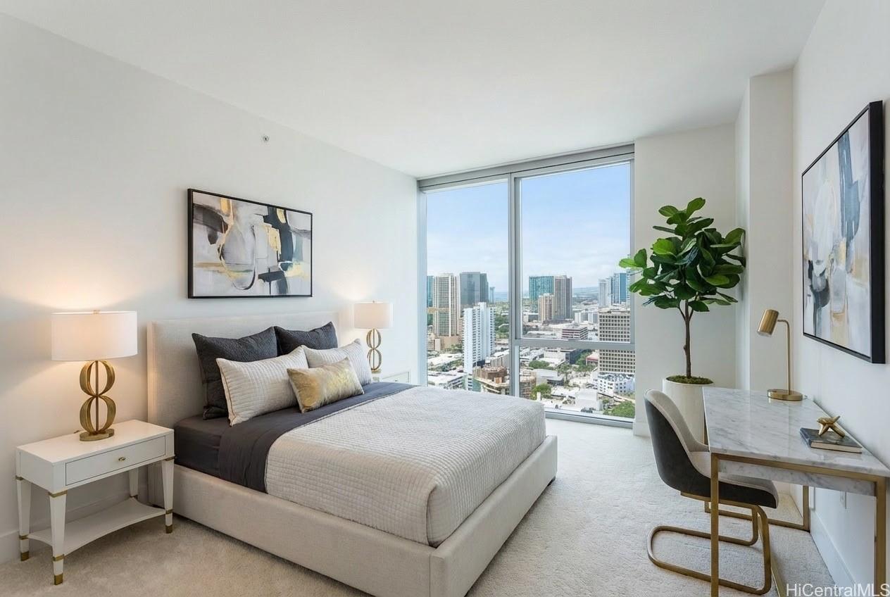 Modern 2-bedroom, 2-bath residence at Azure Ala Moana showcasing an open-concept layout, floor-to-ceiling windows, and a private lanai with sweeping city skyline views. This contemporary condo features solid concrete construction, split A/C in both bedrooms and the living area, and a well-designed interior that balances comfort and functionality.The stylish kitchen is equipped with sleek cabinetry and stainless steel appliances, seamlessly flowing into the living and dining areas—ideal for everyday living and entertaining. The spacious primary suite offers an ensuite bathroom, ample closet space, and thoughtful separation from the second bedroom for enhanced privacy.Residents enjoy resort-style amenities including a pool, spa, fitness center, BBQ areas, and cabanas, along with one secured, assigned parking stall in a well-managed building with 24-hour security. Ideally located just moments from Ala Moana Center, world-class beaches, dining, and the future rail station, this home delivers exceptional urban convenience.Don’t miss the opportunity to own a newer condo in the heart of Ala Moana—contact your favorite Realtor today to schedule a private showing.