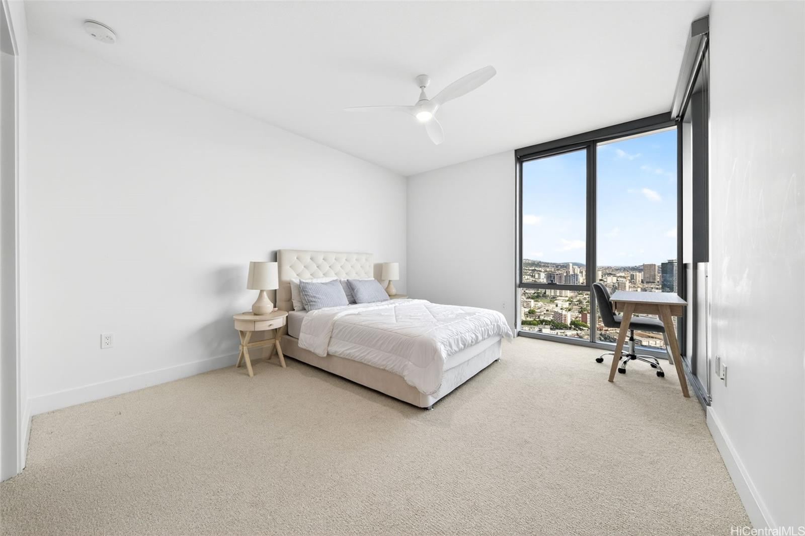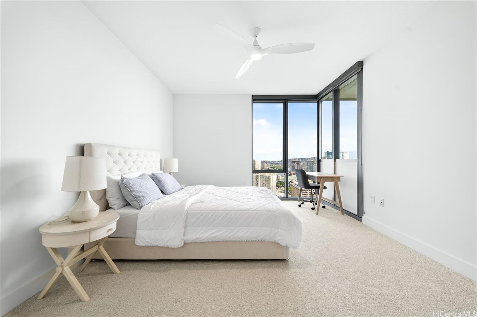 Conveniently located, newer and contemporary Azure Ala Moana is located in the center of Ala Moana area. This beautiful, fully FURNISHED 2-bedroom residence offers a spacious floor plan. Enjoy your morning coffee on the lanai watching the clouds drift over the ocean and mountains. At night, you can enjoy the city lights. Amenities include a dog park, movie theater, guest suites, fitness center, club lounge with kitchen, BBQ cabanas, pool, spa. The guest suites provide your friends and family an option to be in close proximity when they visit you in Hawaii. Close to beautiful Ala Moana Beach Park, Ala Moana Shopping Center, Waikiki, and restaurants. This fully furnished residence is additionally equipped with kitchenware, silverware, pots/pans, bedding and towels. It has everything you need! Don’t miss this wonderful opportunity