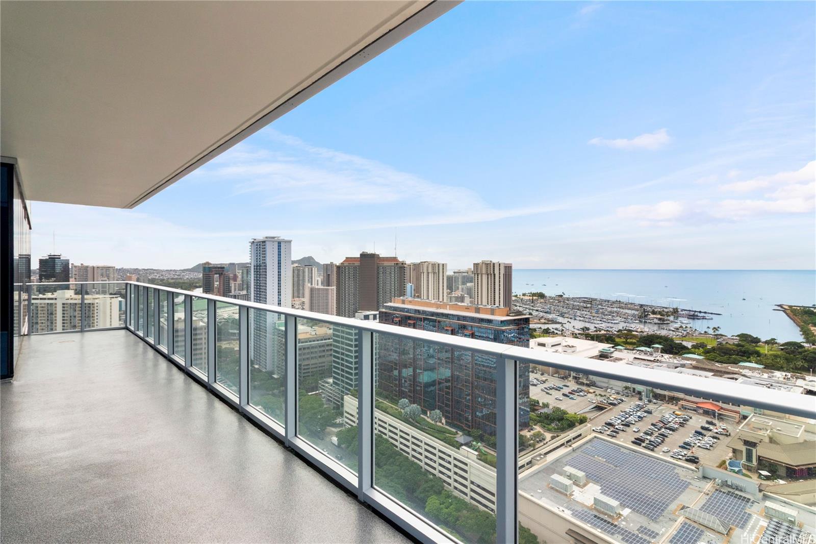 Rising 34 floors above the vibrant heart of Honolulu, a stunning retreat awaits at Azure Ala Moana. This 3 bed, 3 bath residence spans 1,470 sqft of thoughtfully-designed interior space, framed by a 339 sqft wraparound lanai. 9-foot ceilings, floor-to-ceiling windows and engineered European oak hardwood flooring create a polished, contemporary living space. Your kitchen is equipped with SubZero, Wolf and Bosh appliances. The spacious primary suite features two walk-in closets, with a freestanding tub in the primary bath. From every room, cinematic city, mountain, and ocean views unfold. An outstanding convenience: two full-sized parking stalls on a preferred parking level with easy access to the elevator lobby. Azure Ala Moana’s fabulous amenities include: pool, spa tub, fitness center, club lounge, theater, guest suites, BBQ pavilions and a dog park. Just blocks from Ala Moana Center and Ala Moana Regional Park, you are surrounded by premier shopping and dining, essential services and outdoor activities – placing you truly at the center of it all.