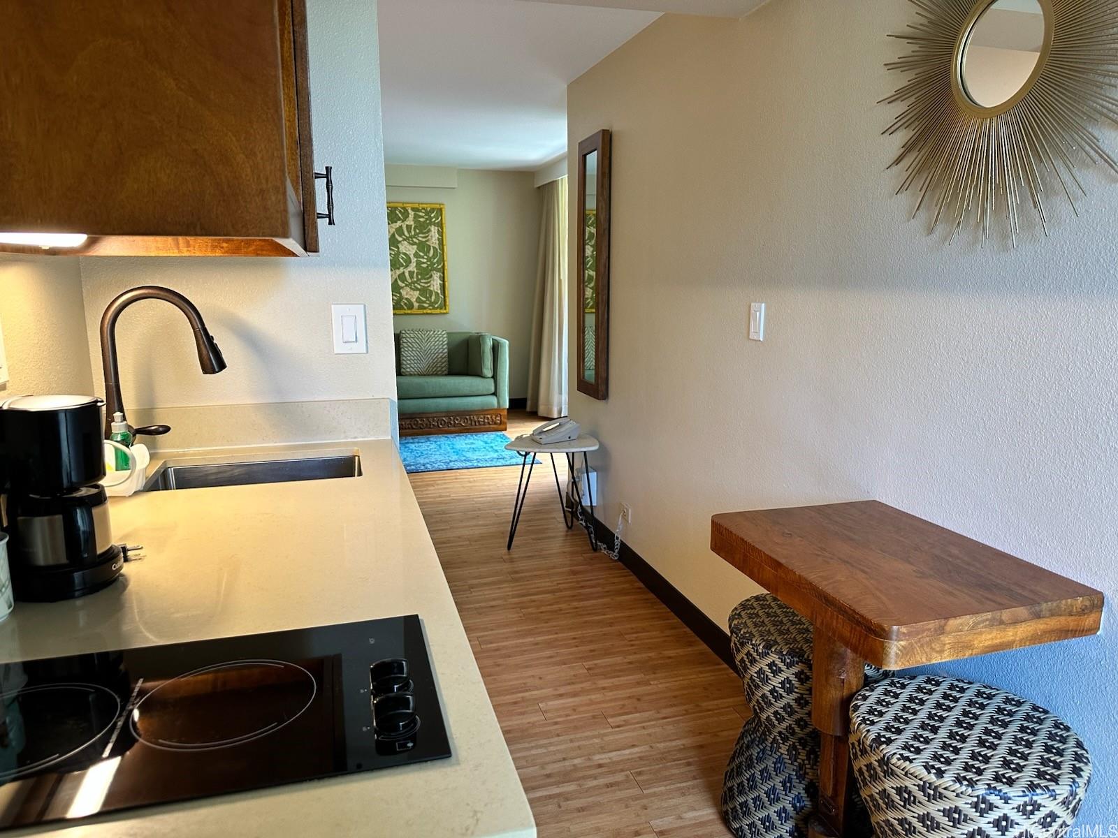 RESORT HOTEL ZONED condo approved for daily rentals. Rarely available larger studio with two lanais/patios overlooking the beautiful Resort Amenities of Bamboo. Total immersion of what staying in a Waikiki Resort feels like. Enjoy, while only being a short walk to world famous Waikiki Beach and all the night life!
