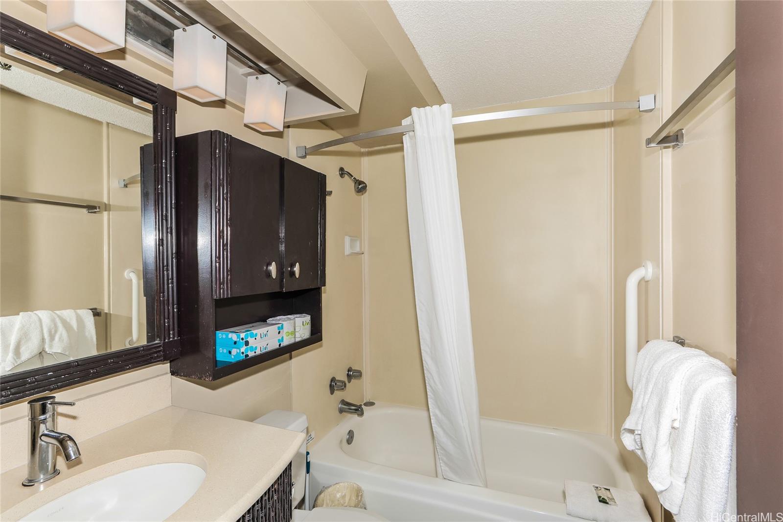 One of the largest studios facing the pool, with a full kitchen. The unit has 3 lanais. Currently zoned as resort for daily legal rental. Can be changed to residential for long term rental or for owner to stay, with a big reduction in property tax(from 1.39% to 0.35%). Unit is in the hotel pool, making it very convenient for an investor. Since it faces the pool it does not have the traffic noise from Kuhio Ave. Short walk to popular attractins Waikiki beach, International Market Place, Royal Hawaiian Shopping center, restuarants, food courts ,shops and parks. Amenities :Dine at the Ko Tiki Terrace restaurant, pool with waterfall, jacuzzi – all in a tiki theme ambiance. Guest parking Available at $40 per night on a first come ,first served basis