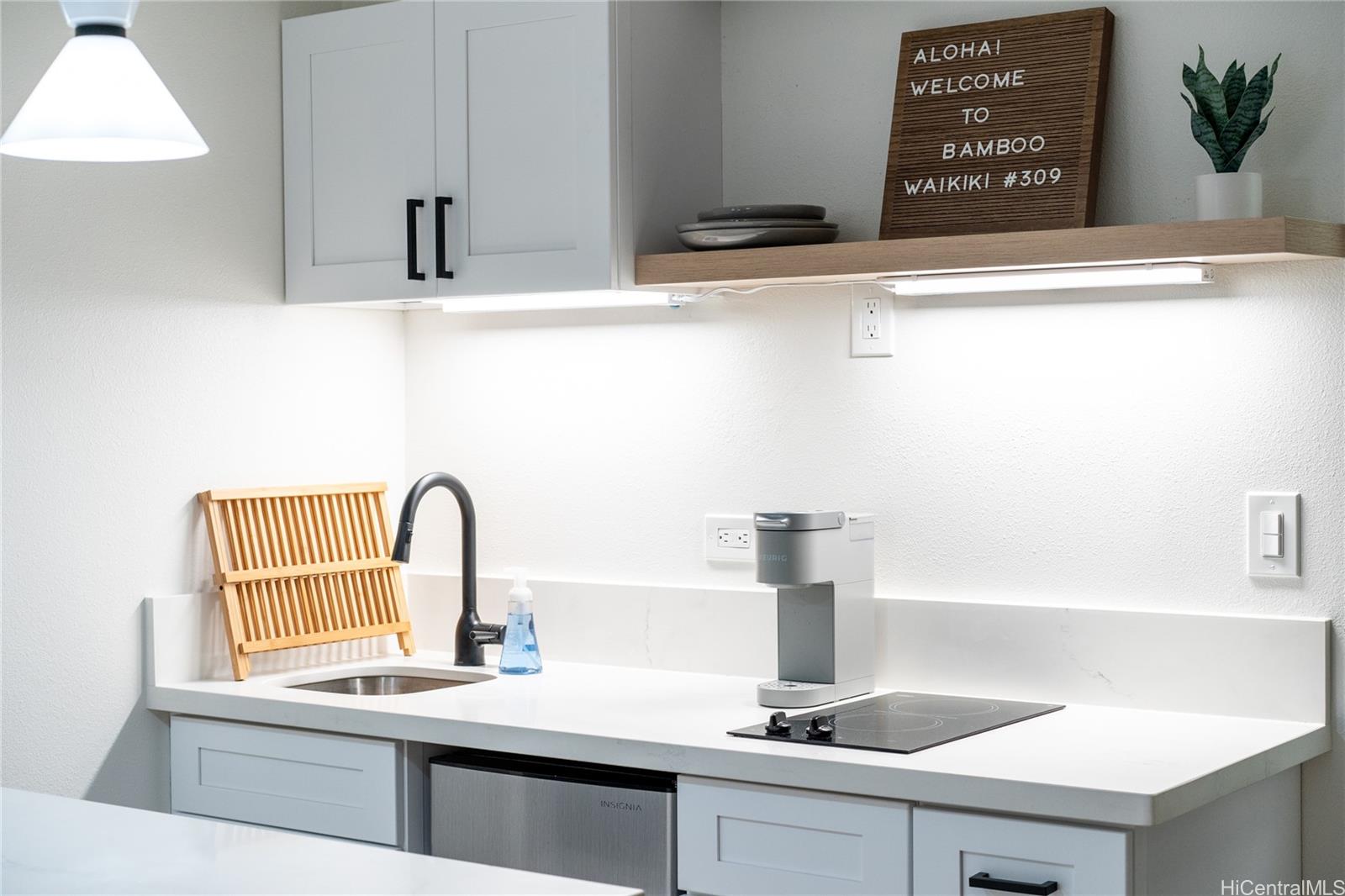 Great value on this chic, successful STR that is fully renovated and exudes island elegance and modern comfort. Located in the Bamboo, a boutique condotel situated in the heart of Waikiki – just 1.5 blocks from world-famous Waikiki Beach and steps from numerous tasty restaurants, boutique shops and the International Marketplace. A proven high-performing vacation rental, this self-managed Airbnb gem offers strong income potential from Day 1 – No DPP approval necessary to operate as an STR. Renovations were completed in 2023 and the unit comes fully furnished, and has a thoughtfully designed and sleek kitchenette with built in cooktop. There is also a lanai—perfect for relaxing after a day in the sun. Bamboo is one of Waikiki’s most desirable short-term rental buildings, offering resort-style amenities including a lush tropical pool, jacuzzi, on-site restaurant, and guest parking for a reasonable cost. Whether you’re seeking a luxurious vacation retreat or a turnkey investment, this exceptional unit delivers the best of both worlds—modern luxury and timeless island charm.