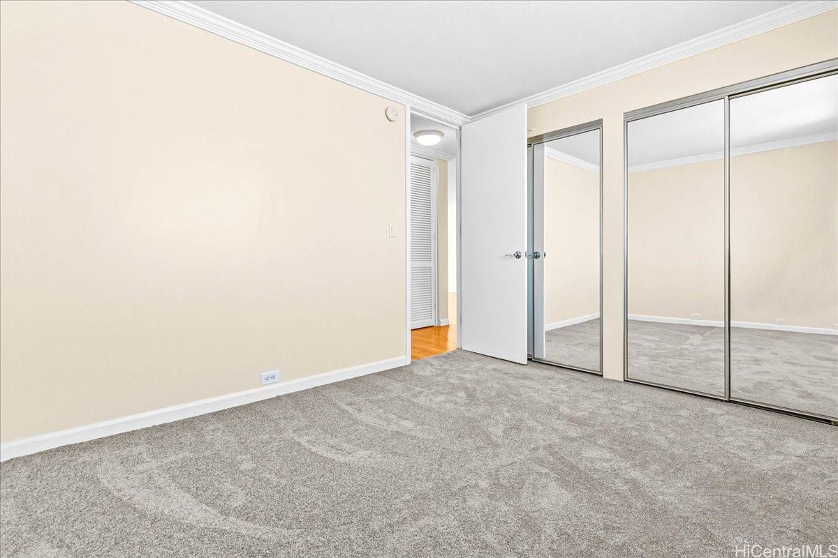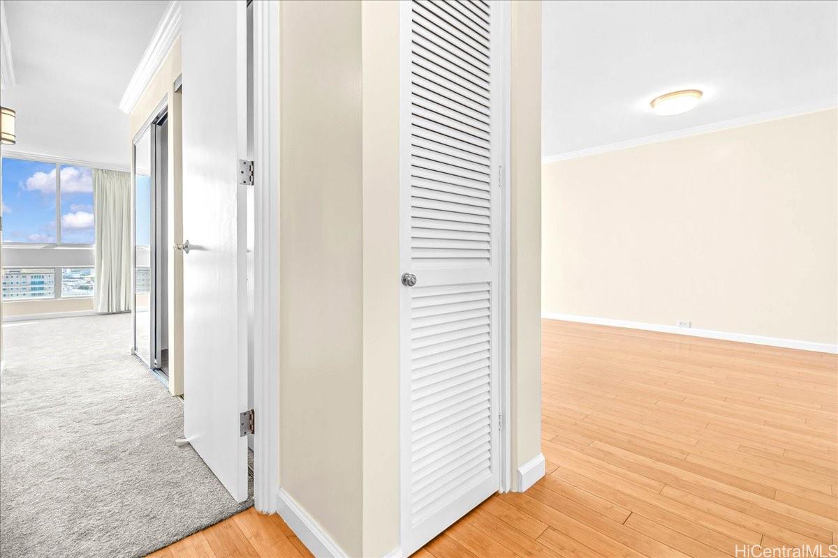 Beautifully updated and move-in ready high-floor 2-bedroom, 2-bathroom unit offering 981 square feet of interior living space, plus a spacious balcony with Diamond Head, city, and mountain views. This residence in the Banyan Tree Plaza features flooring, crown molding, and popcorn ceilings fully removed. Recent improvements include fresh interior paint, new carpeting in both bedrooms, and new drapery installed December 2025. The kitchen has been upgraded with recently installed stainless steel appliances and the unit comes with in unit washer/dryer, completing the modernized interior. A major value-add is the fully paid-off plumbing replacement loan assessment, providing added peace of mind. The building is VA approved, enhancing financing flexibility. Conveniently located near Ala Moana Shopping Center, University of Hawaii, various schools, easy highway access for commute and close proximity to Kapiolani Medical Center. Building amenities include a swimming pool, BBQ area, newly refurbished recreation room, gated parking, multiple guest parking stalls and 24-hour security. Vacant and easy to show.
