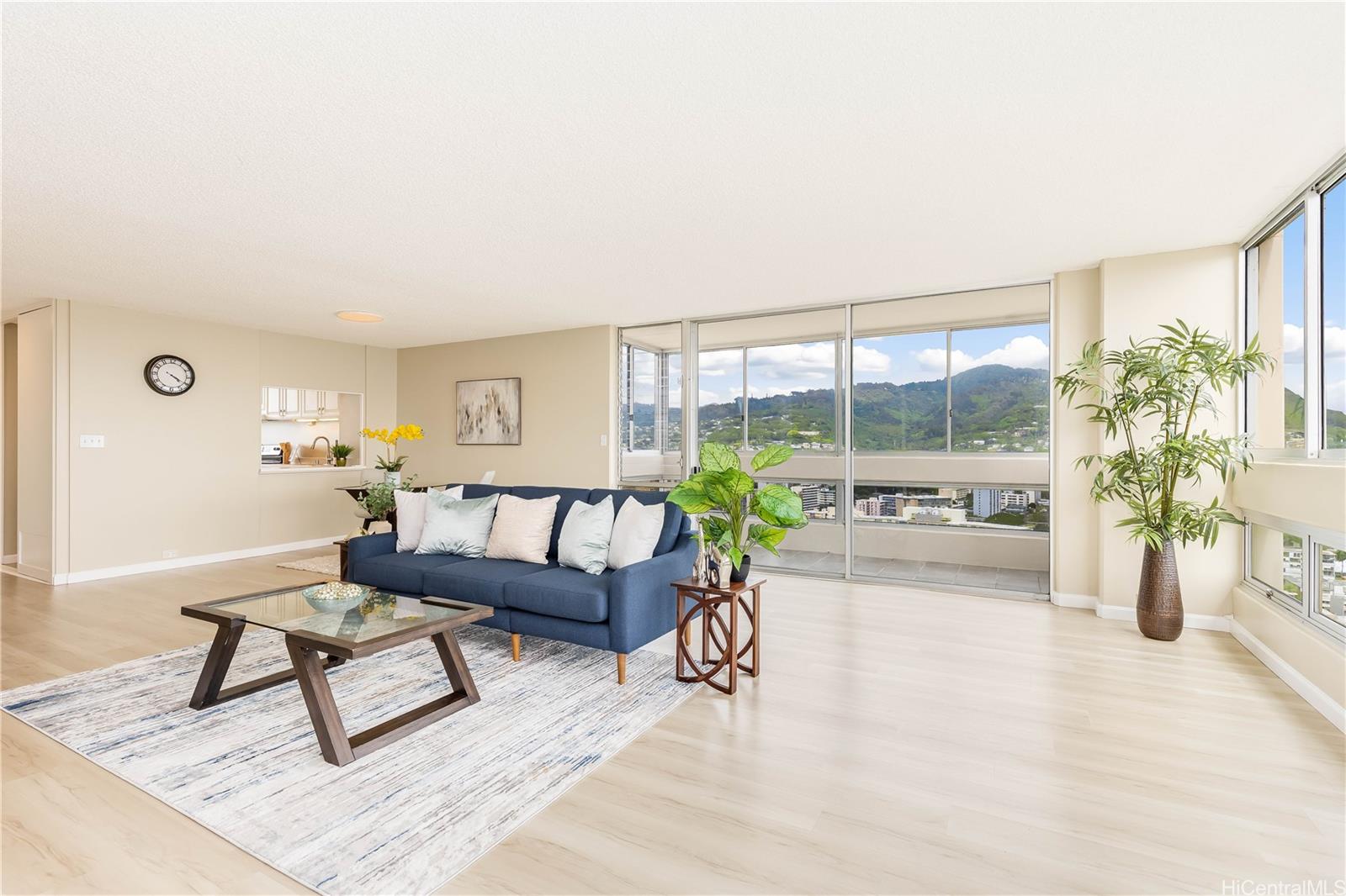 バンヤンツリープラザにあるこの2ベッドルームの住居は、めったに市場に出回らず、非常に広々としています。約1,500平方フィート(約139平方メートル)の室内居住スペースを備え、当ビルで最も広い間取りの一つとなっています。 三方を囲む大きな窓からは、見渡す限りのパノラマビューが広がり、自然光が家全体を満たす一方で、涼しい風を通し通しの心地よい風通しを実現しています。 主要病院、一流私立学校、アラモアナセンター、ワイキキに近く、高速道路へのアクセスも良好な好立地です。 セントラル・ユニオン教会とシュライナーズ小児病院の静謐な敷地が周囲の街区を引き立て、ホノルルの中心部にあって静かで手入れの行き届いた街並みの雰囲気を醸し出している。 バンヤンツリープラザは、セキュリティ完備の管理が行き届いた建物です。温水塩水プール、屋外ダイニングエリア付きのガスBBQステーション、サーフボード保管庫、洗車場、十分なゲスト用駐車場、常駐警備員を完備しています。 .