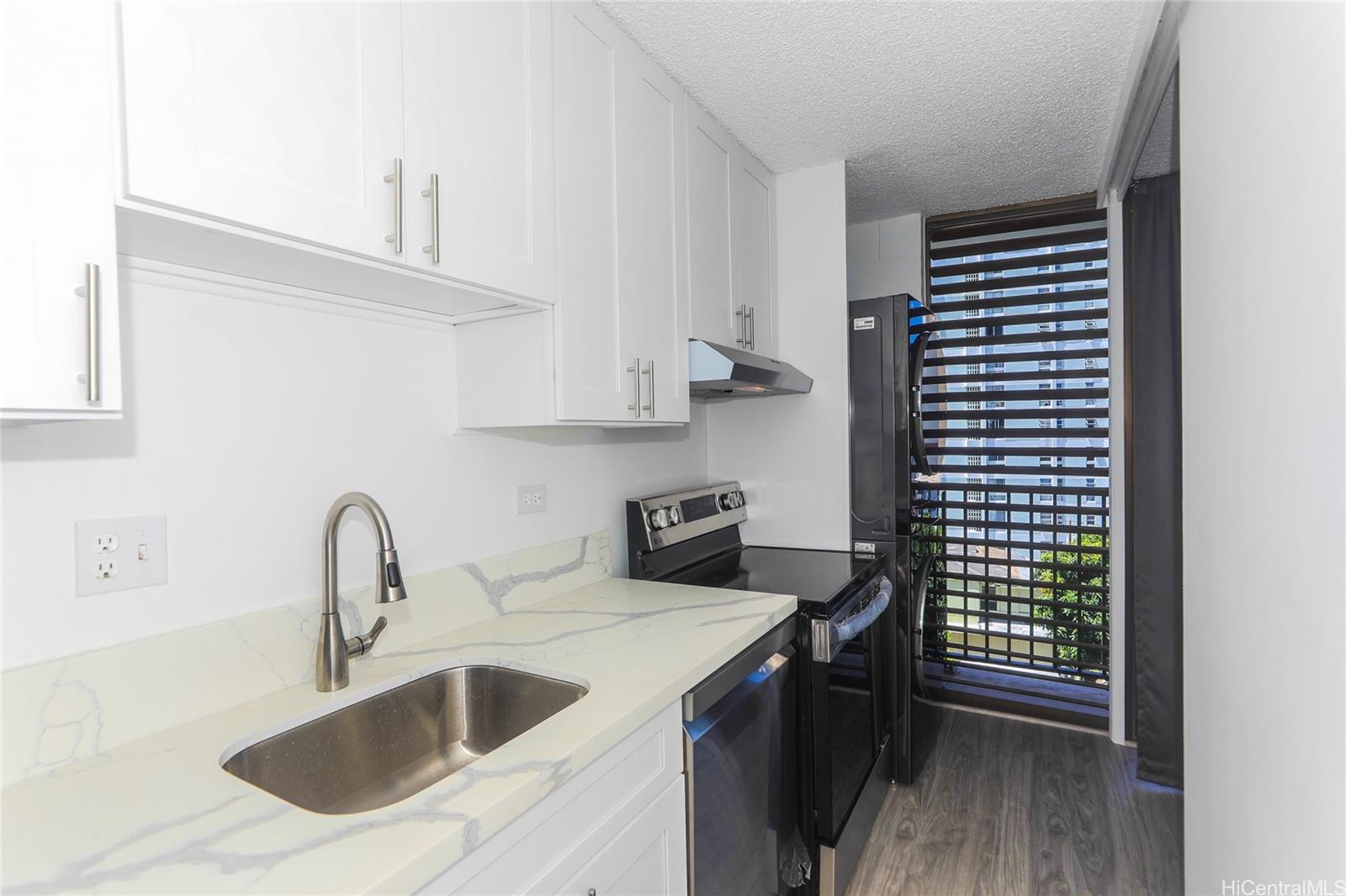 Welcome to your island oasis in the well known Camelot Building. This bright and breezy 5th-floor studio offers a great city view, comfort, convenience, and amenities in the heart of Honolulu. Step inside to discover brand new flooring, modern kitchen cabinets, and updated appliances, creating a fresh, move-in-ready space perfect for first-time buyers, students, or investors. Enjoy peace of mind with secured entry and the support of an on-site resident manager. The Camelot community boasts an impressive list of amenities including a newly remodeled sauna, fitness center, swimming pool, and BBQ area — ideal for relaxation and entertaining. Unbeatable location with easy freeway access and just minutes away from beaches, Ala Moana Shopping Center, and the University of Hawaii at Manoa.