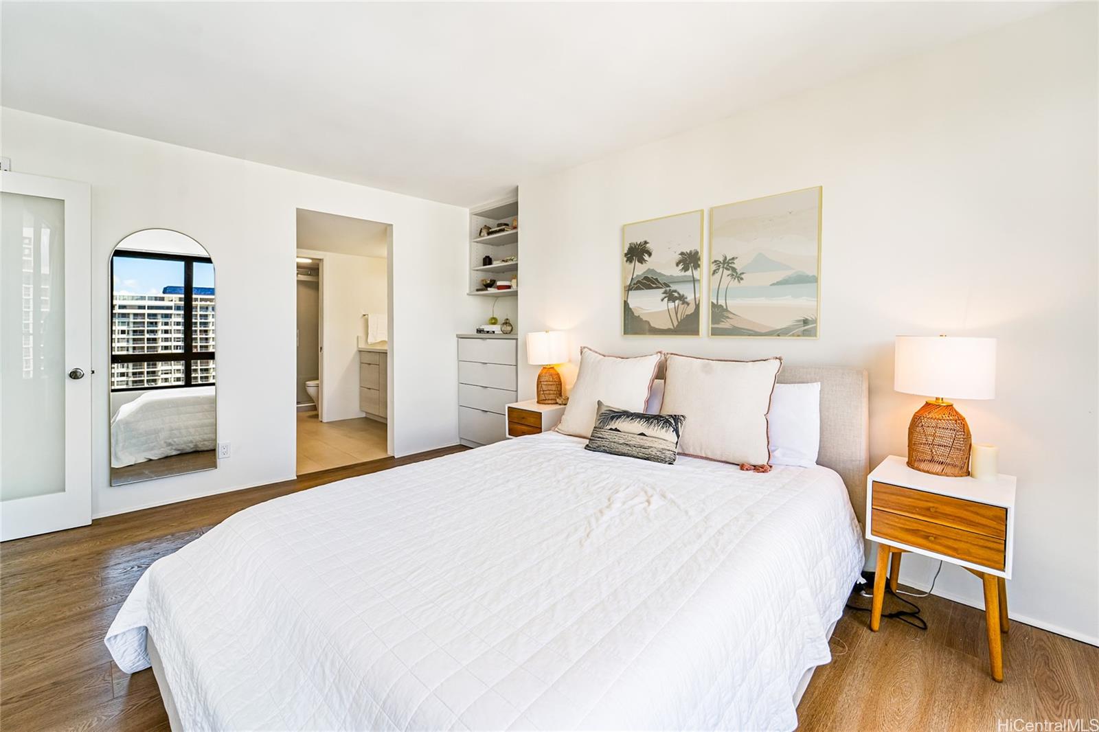 2021年に美しく改装された、ククイプラザ・ダイヤモンドヘッドタワーの1ベッドルーム1バスルームコンドミニアム。市街地、山、海の眺望を望めます。 キッチンと洗面化粧台にはシェイカースタイルの木製キャビネットを採用。クォーツカウン ...