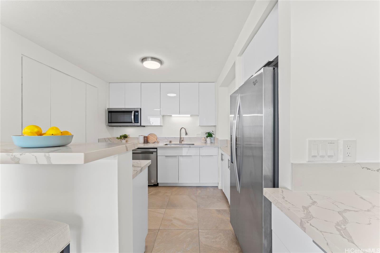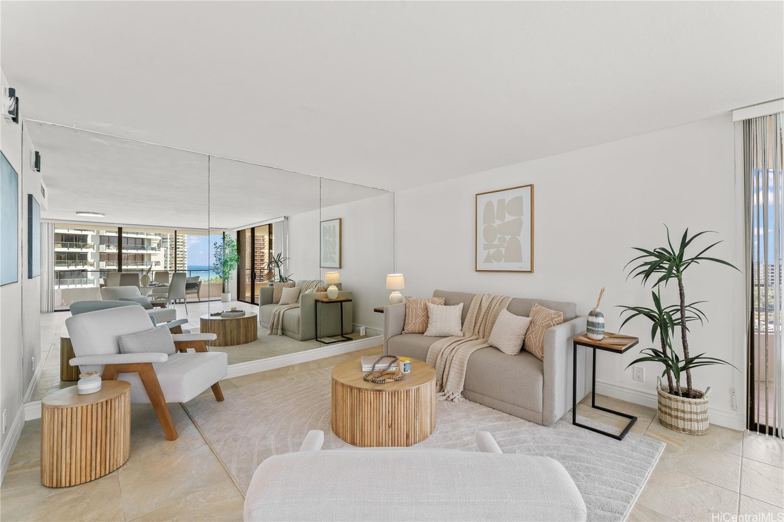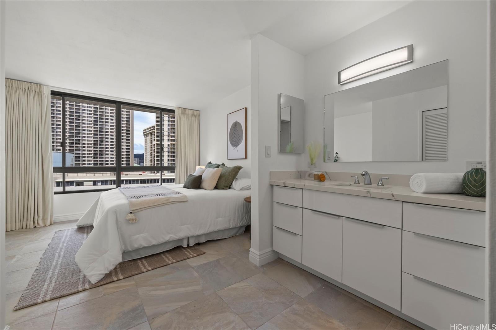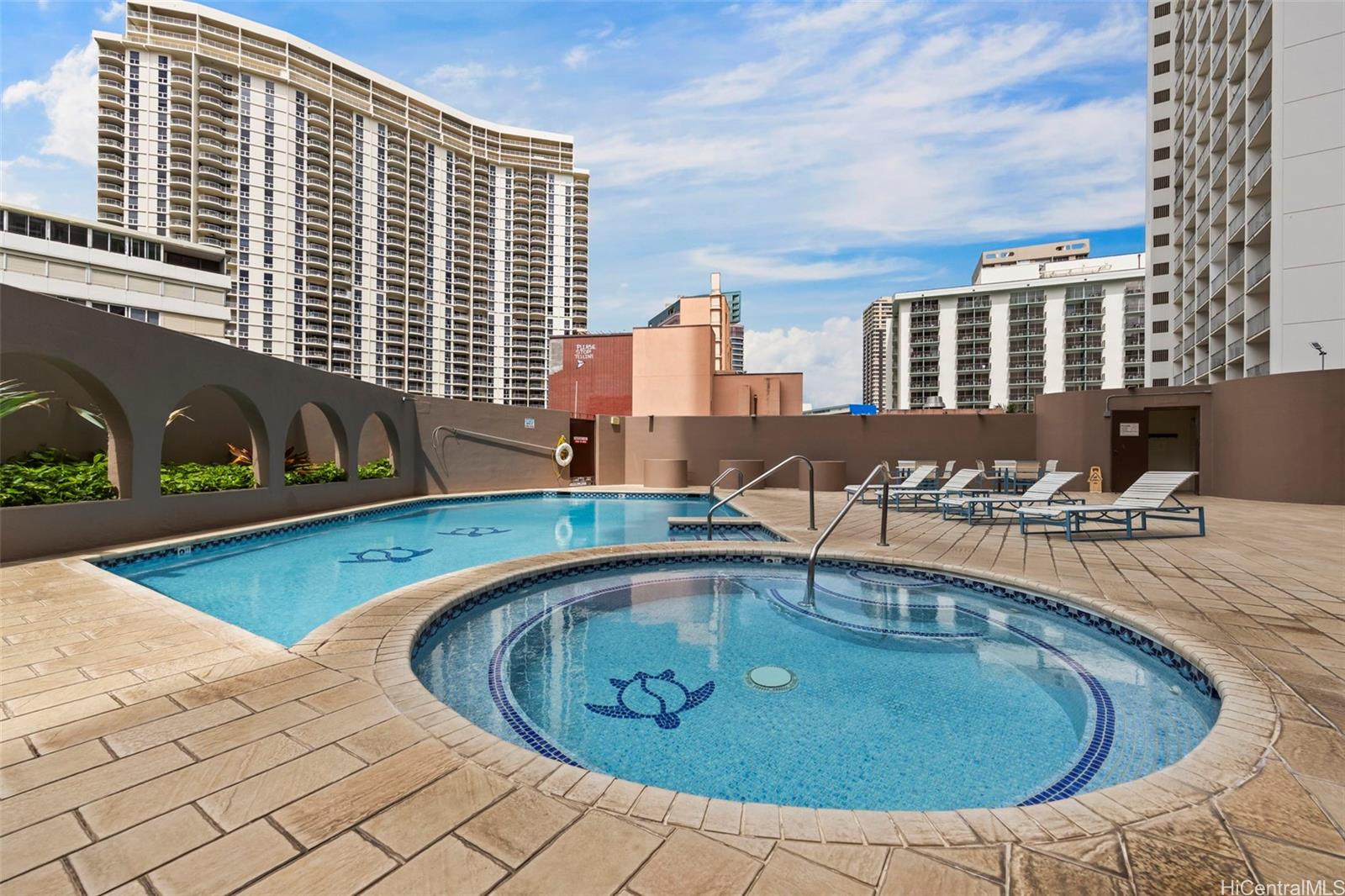 2022年に大規模な改装が行われたこの美しく生まれ変わった2ベッドルーム・2バスルームの住戸は、16階からダイヤモンドヘッドと海の素晴らしい景色を一望できます。 随所に細部までこだわった上質な仕上げが施されており、美しいタイル張りのラップアラウンド・ラナイが、ワイキキの中心地において、屋内と屋外がシームレスに融合した居住空間を実現しています。 このリフォーム済みの物件には、セントラルエアコンと屋根付き駐車場1台分も付いています。 セキュリティが万全でペット同伴可能なこの建物は、充実した設備を備えており、入居者はプール、ジャグジー、サウナ、バーベキューエリア、レクリエーションスペース、ドアマン、警備体制などを利用できます。 管理費には、光熱費、インターネット代、そして充実したケーブルテレビのパッケージ料金がすべて含まれており、大変便利です。 .