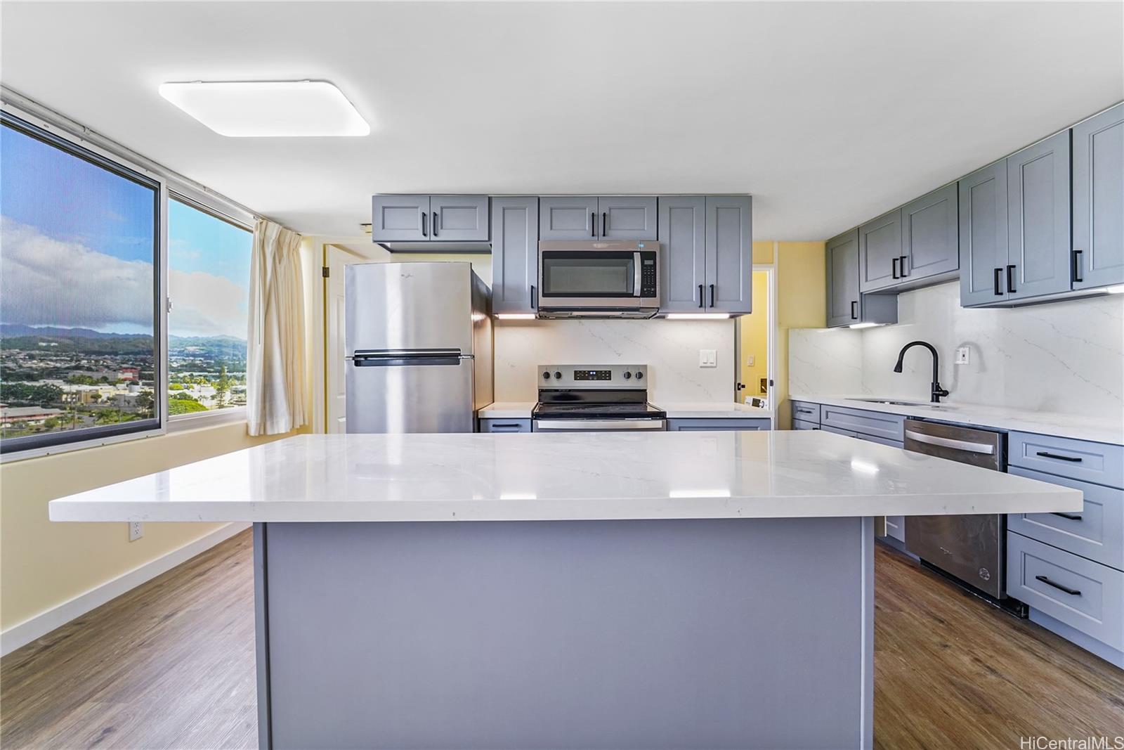 Welcome home to this newly renovated unit in Century Park Plaza! Enjoy breathtaking mountain, ocean, and sunset views from this beautifully 1-bedroom, 1-bath residence. The home features a spacious open-concept floor plan with NEW kitchen, cabinets, appliances, and washer-dryer. Unit features luxury vinyl flooring, quartz countertops, new interior paint throughout, and much more! Ideally situated in Central Oahu, has a walkable neighborhood and within close proximity to the NEW Skyline Rail Station, Restaurants, Shopping, Entertainment, Pearl Harbor, and freeway on-ramps. Amenities include: Swimming Pool, Jacuzzi, 24/7 Security, Pickleball, Tennis and basketball courts, plus a large grassy area perfect for children or pets. Don’t miss out on this rare opportunity to live in Century Park Plaza! BONUS: Unit is 100% insured for Hurricane Insurance