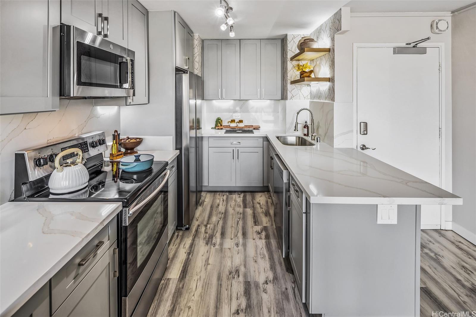 スタイリッシュに改装された2ベッドルーム・2バスルームのコンドミニアム。ホノルルで最も中心的な地区、ソルトレイクに位置しています。 広々としたオープンキッチンを備えた新築の家に帰り、緑豊かなコオラウ山脈を望む広々としたラナイで、眼下に広がる貴重な緑の回廊を眺めながら、屋外で食事をお楽しみください。 センチュリー・ウェストは、安全でペット可の建物であり、責任感のあるスタッフと24時間警備体制が整っています。 プールで泳いだりくつろいだりしながら、空港、高速道路、パールハーバー・ヒッカム統合基地への便利な立地をお楽しみください。 .