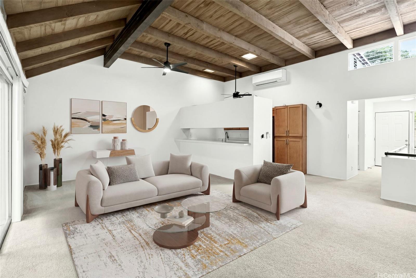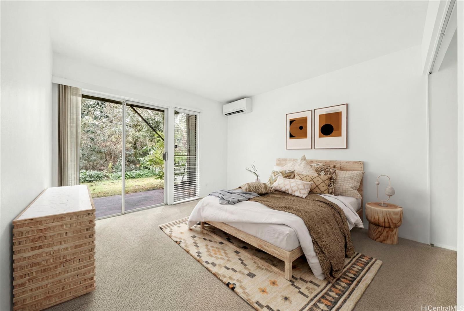 Welcome home to one of Club View Gardens’ finest residences. This beautifully upgraded 3 bedroom, 2 bath unit offers ultimate privacy with no back neighbors – just a serene backdrop of lush greenery. The main level features a primary bedroom with a full bath, vaulted ceilings, and a tastefully renovated kitchen perfect for country living. Downstairs, you will find 2 additional bedrooms, a second full bath (also renovated), and a convenient bonus storage area. Enjoy multiple private courtyards, ideal for relaxing or entertaining. Stay comfortable year-round with Mitsubishi split AC units installed in the living room and ALL 3 BEDROOMS. Pet friendly and complete with 2 parking stalls, this home is a rare product and must see.