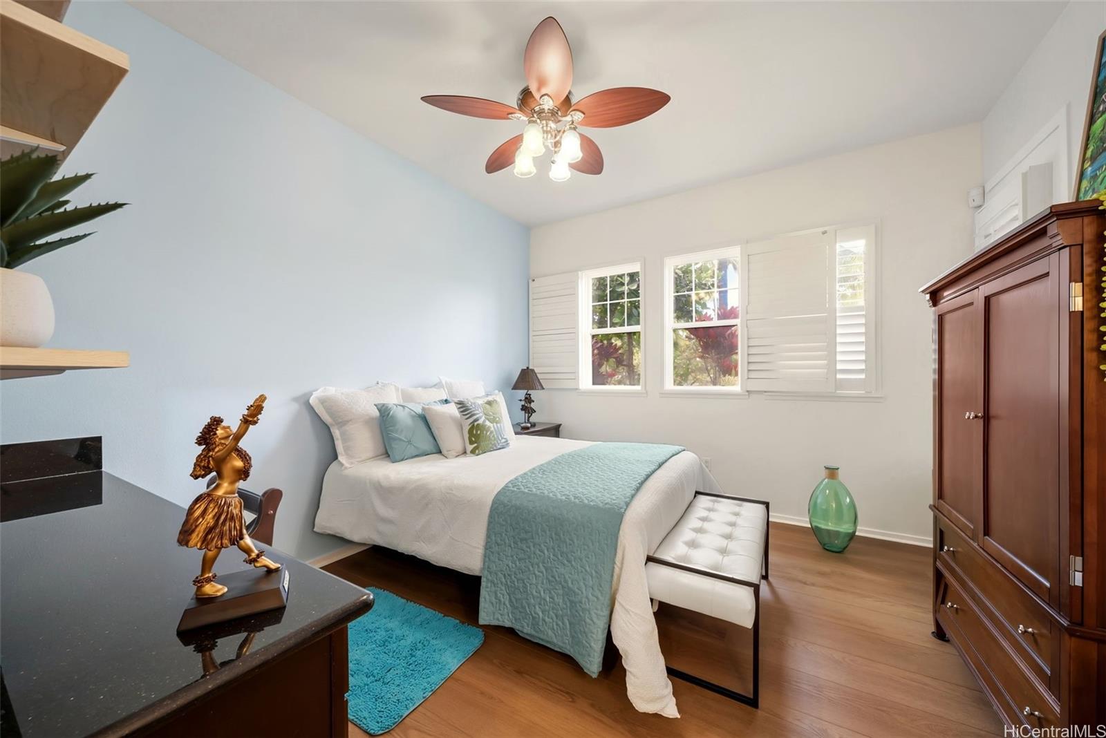 Live where others only dream of vacationing in this turn-key island oasis. Newly renovated “haven on earth” at the gated Coconut Plantation at Ko Olina. This 2-bd, 2-ba home offers impeccably redesigned space that balances modern luxury with a classic plantation charm. 2026 renovation features brand-new luxury vinyl plank flooring in the bdrms, and a fresh coat of interior luxury paint for a brighter home. Sky-high ceiling in kitchen & living room is the centerpiece, completely updated with brand-new stainless steel appliances. Home showcases plantation shutters & custom kitchen cabinets with granite counters. Also, a brand-new washer and dryer. Every corner of this luxury floor plan is designed to capture natural light and soothing Hawaiian tradewinds. The private back lanai overlooks a manicured tropical paradise for daily relaxation. The front cozy patio parallels a long covered walkway. A large pool and spa are just around the corner. As a resident of this gated enclave, you are located near championship golf, world-class dining, a park, and the four iconic crystal-clear Resort lagoons. Near comm. pools/highway, gym, a park, tennis, yoga, and pickleball. Photos enhanced.