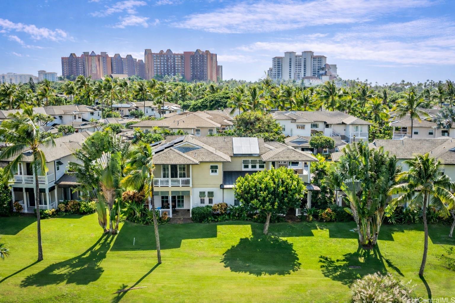 MOTIVATED SELLER! Resort-Style Living on the 13th Fairway in Ko Olina ResortExperience refined island living in this beautifully upgraded 4-bedroom, 3-full-bath townhouse with peaceful pond views in the prestigious Resort community. Offering 1,834 sq. ft. of interior living, this turnkey residence features upgrades throughout, including owned 22-panel PV solar system. The spacious and flexible floor plan is ideal for full-time living, a second home, or investment use, with a minimum 30-day rental requirement. Enjoy resort amenities including beach access, golf, tennis, pickleball, fitness center, and classes through the Ko Olina Beach & Sports Club. Just minutes to fine dining, marina access, walking paths, and resort conveniences. A rare opportunity to own a turnkey, upgraded residence in one of Oahu’s most desirable resort destinations. Short Notice and Easy to See!