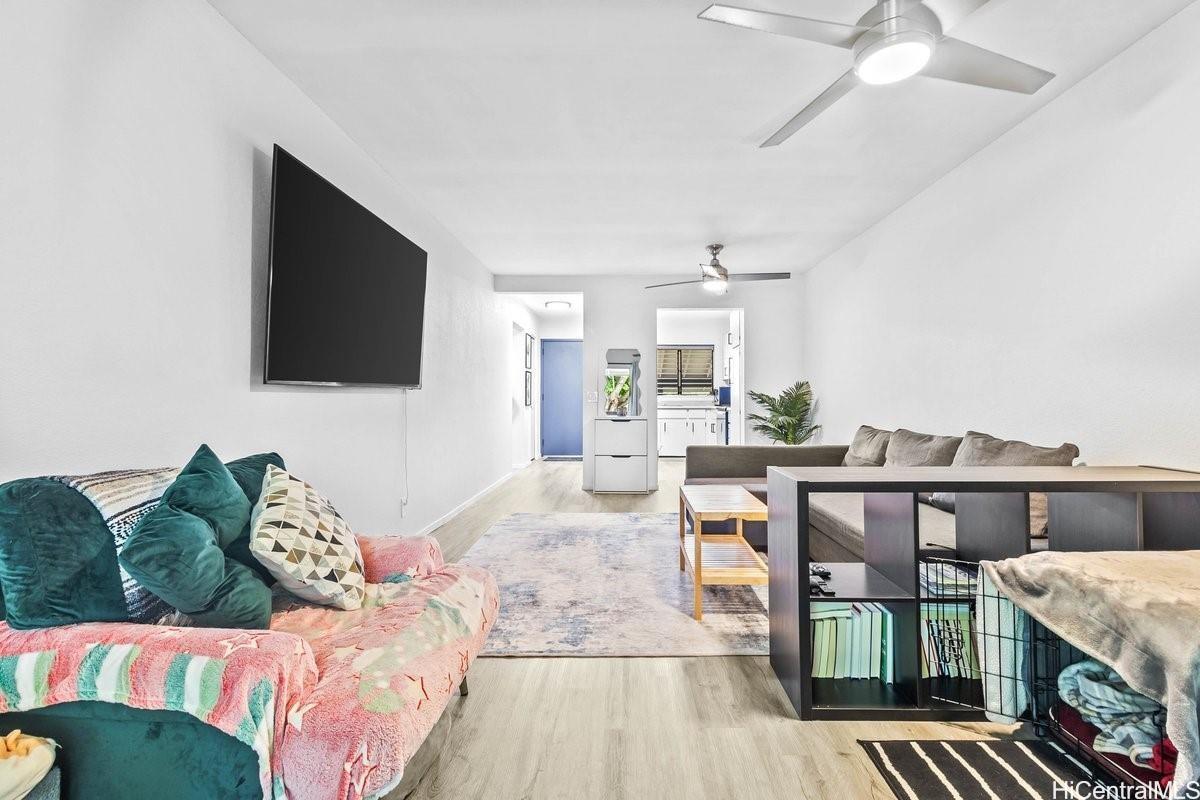 E komo mai! This 2-bedroom, 2-bath home is move in ready, making this space truly feel like home. 2 ASSIGNED PARKING STALLS for this unit. Enjoy newer flooring, updated appliances (washer & dryer included) and a second floor unit perfectly positioned in the front of the complex allowing you to pull right up to your parking stall and enter the home. Conveniently located in central Pearl City, close to shopping, school, and freeway access, and short walk-in distance to the Skyline rail system. Easy access to the freeway is also a plus! VA assumable loan is available.