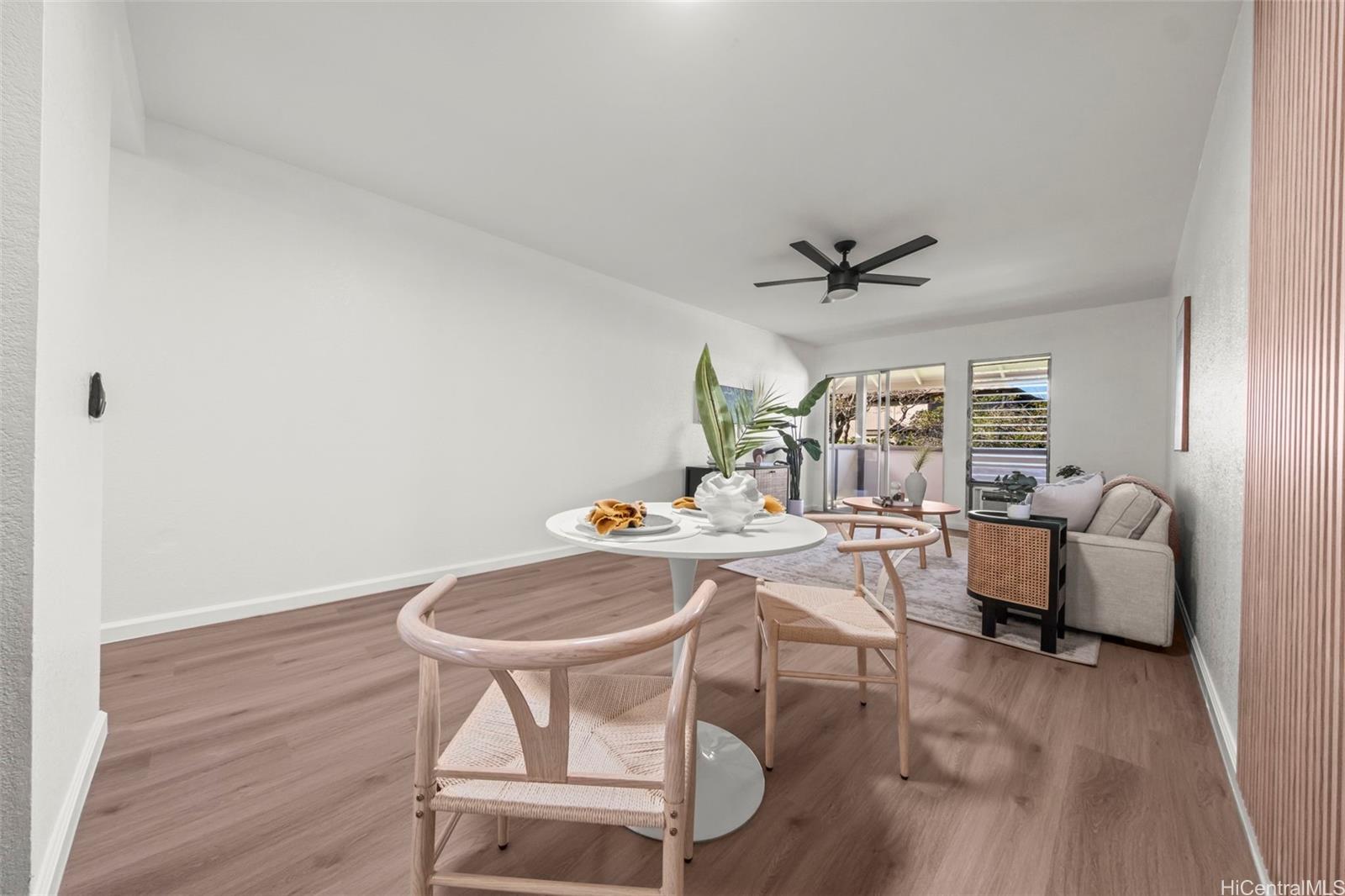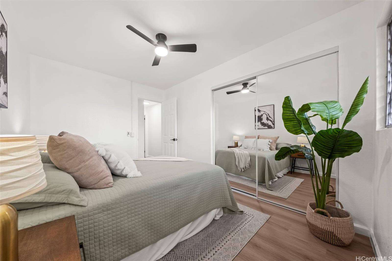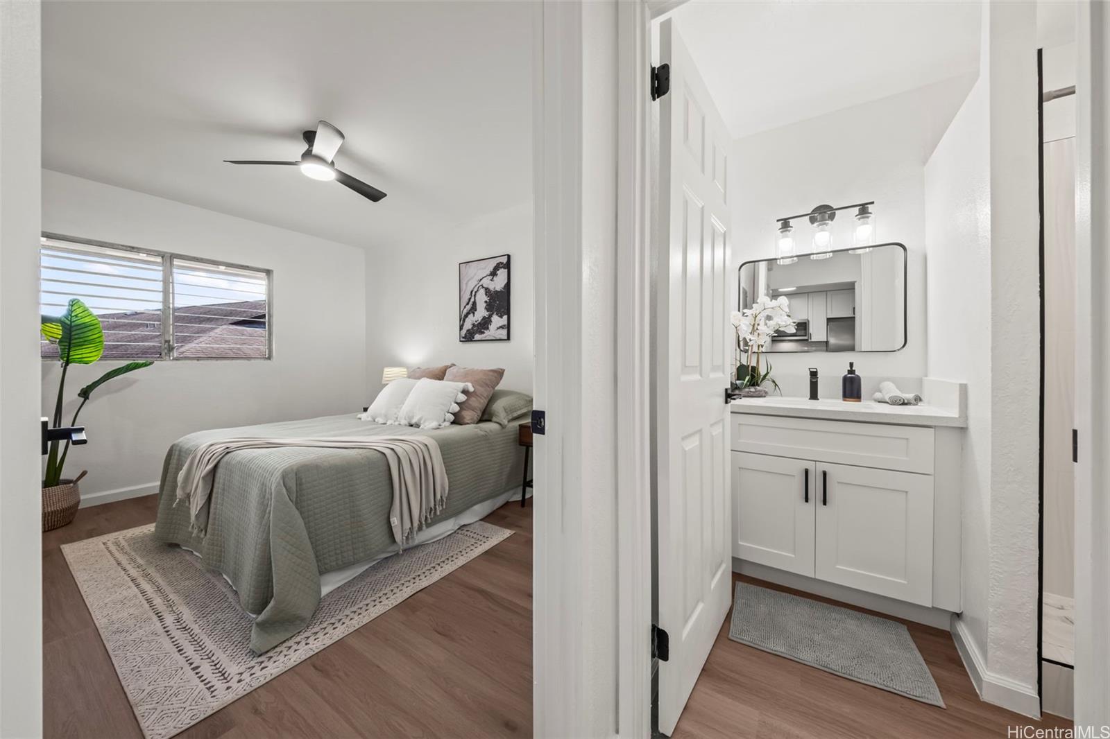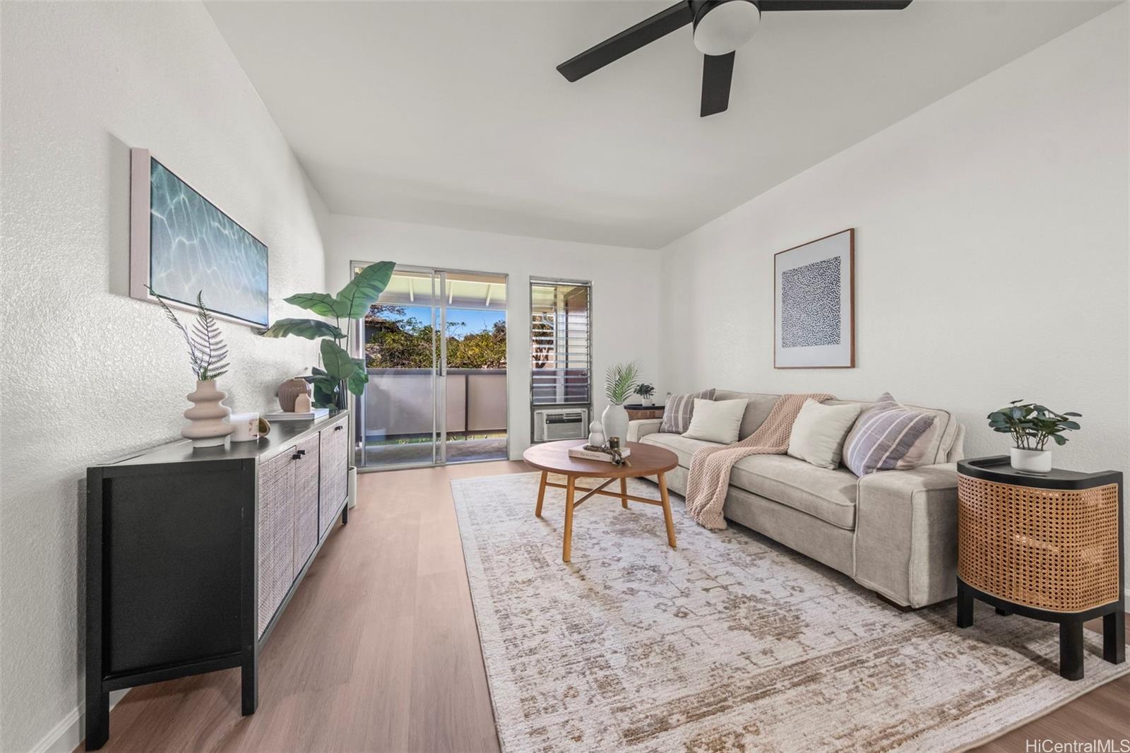 Welcome home to this beautifully renovated 2-bedroom, 2-bath residence in the highly desired College Gardens community. This open and inviting home showcases a modern layout that blends style and functionality. Features include luxury vinyl plank flooring throughout, sleek stainless steel appliances, modern fixtures, and tasteful finishes that create a warm and contemporary atmosphere. Enjoy year-round comfort with a window AC unit and natural light that fills the interior. This move-in-ready home offers the convenience of one assigned parking stall and is ideally located near freeway access, shopping centers, and restaurants. Experience the ease of modern living in a central Pearl City location that provides both comfort and accessibility.