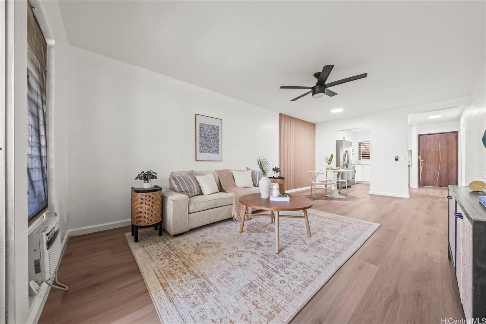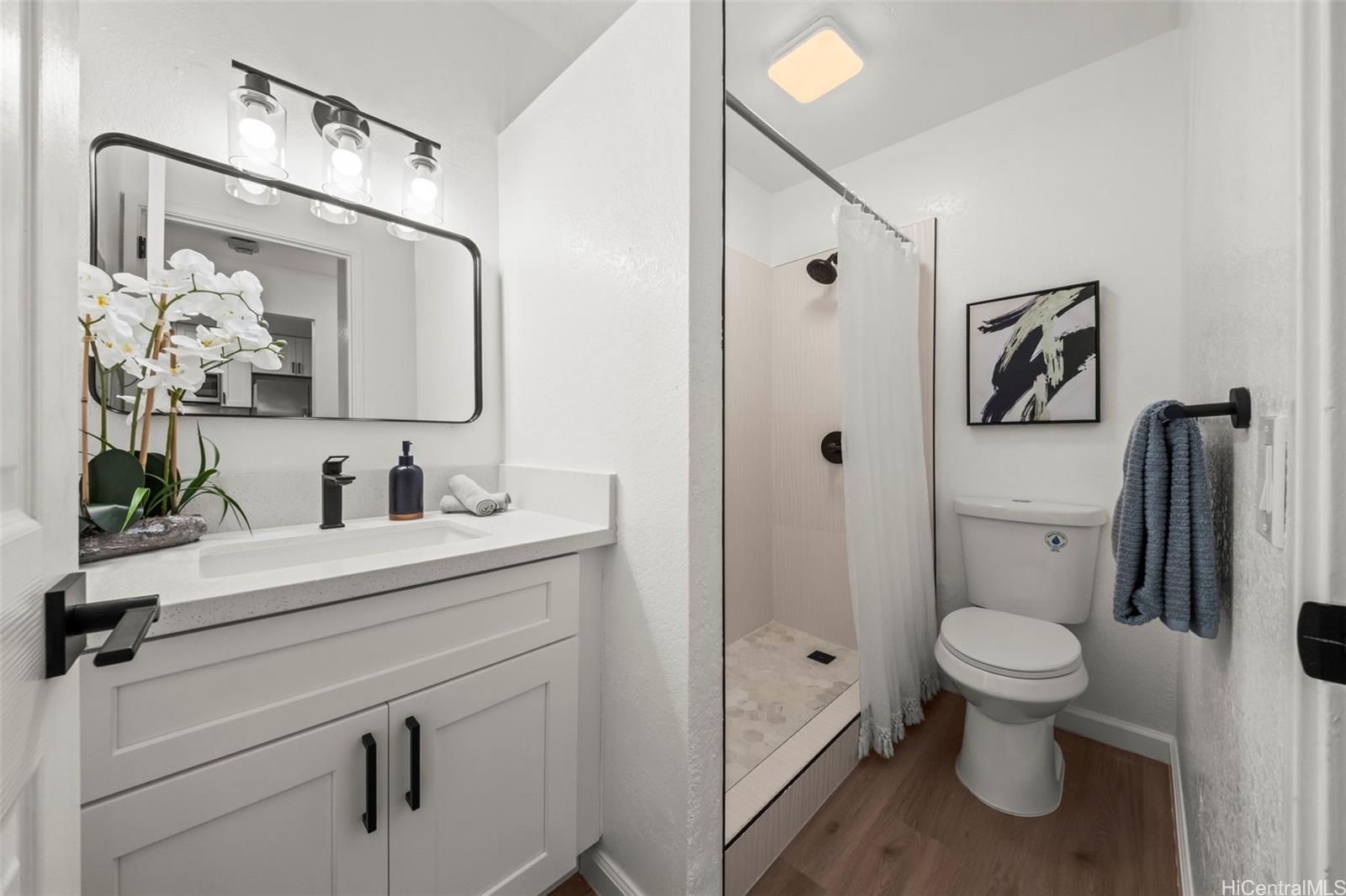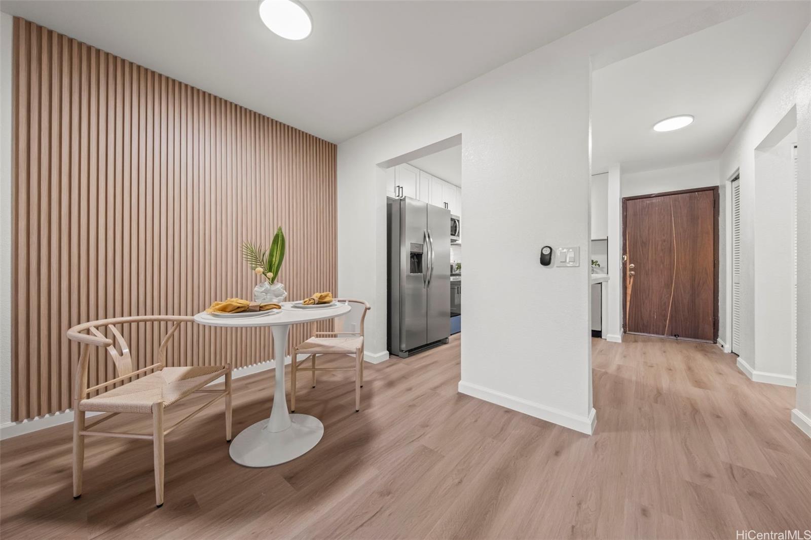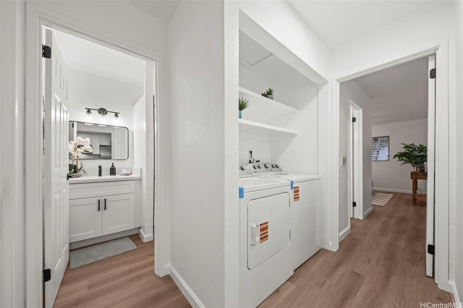 Welcome home to this beautifully renovated 2-bedroom, 2-bath residence in the highly desired College Gardens community. This open and inviting home showcases a modern layout that blends style and functionality. Features include luxury vinyl plank flooring throughout, sleek stainless steel appliances, modern fixtures, and tasteful finishes that create a warm and contemporary atmosphere. Enjoy year-round comfort with a window AC unit and natural light that fills the interior. This move-in-ready home offers the convenience of one assigned parking stall and is ideally located near freeway access, shopping centers, and restaurants. Experience the ease of modern living in a central Pearl City location that provides both comfort and accessibility.