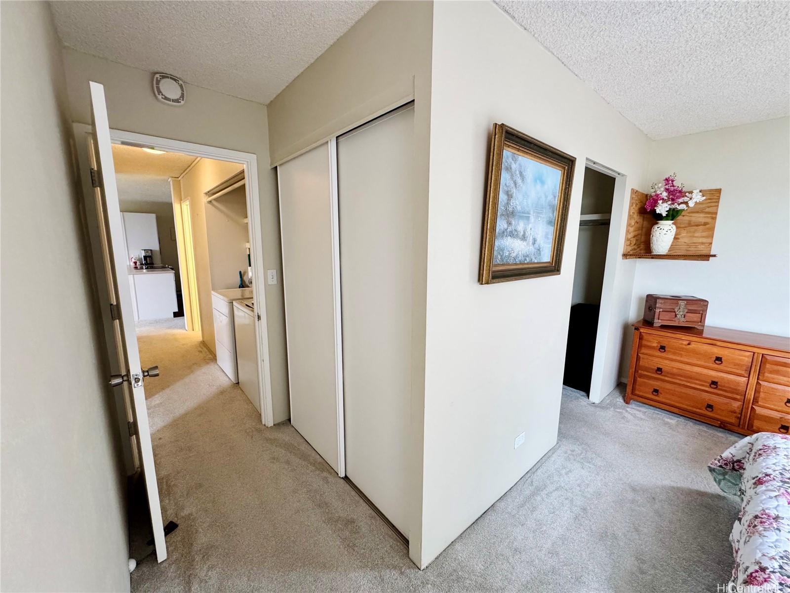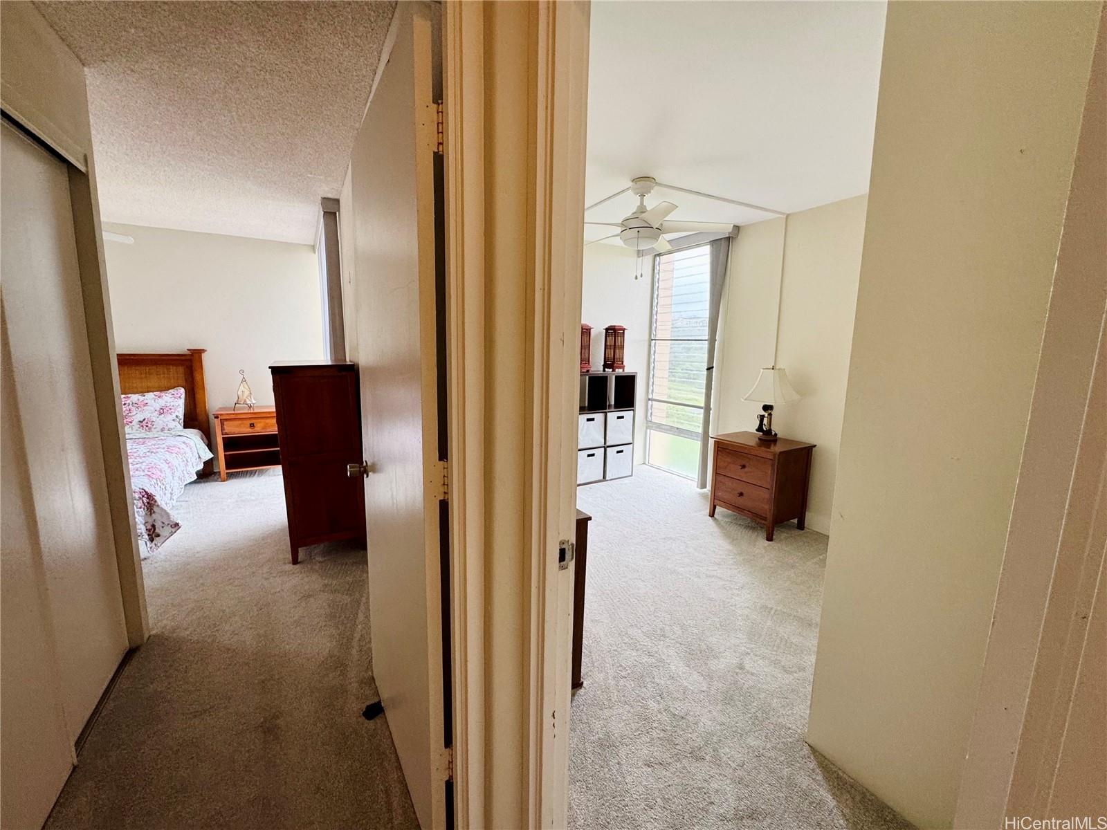 Rarely available corner unit featuring a versatile den area, perfect for a home office, reading nook, or guest space. Located in a highly desirable, secluded, gated community complex with all you need amenities for peaceful & healthy living! This 10-floor condo boasts a spacious living room with lanai, 2 bedrooms & 2 bathrooms making it perfect for first-time home buyers or investors. The bright & airy living room offers sweeping views of the golf course, Pearl Harbor, & partial ocean view from its lanai that is ideal for sipping your coffee while enjoying the island setting. The primary suite includes two closets & a remodeled shower tab. Updated kitchen, washer/dryer in unit, & one assigned open parking. Located in upper Aiea near the Pearlridge Shopping Center, with numerous dining and entertainment options, this community offers a peaceful retreat away from the busy city life. You’ll enjoy a perfect balance of comfort, convenience and value. Pet friendly!The Colonnade features heated pool & whirlpool, tennis & pickleball courts, exercise rooms & saunas, BBQ grills & recreation areas, EV charging stations, basketball court, game room, & more! MUST SEE to appreciate it all!