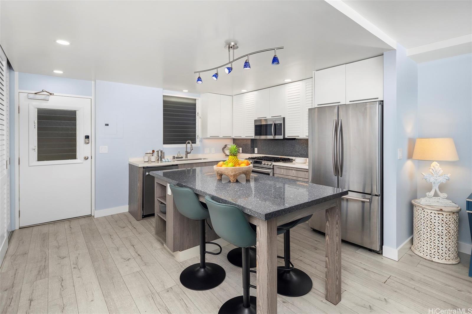 海を一望できる絶好のロケーションで、洗練された島暮らしを。 オアフ島で最も人気のある砂浜のビーチフロントに位置する、象徴的な「コロニー・サーフ」の高層階に佇む、美しく改装されたこの1ベッドルームの住居は、希少な物件です。 一等地の正面中央に位置するこの邸宅からは、太平洋、海岸線、そしてワイキキのスカイラインを一望できます。 開放的な間取りは自然光に満ちており、息をのむような海の景色に囲まれています。 明るい色合いの沿岸風フローリング、こだわりの天井デザイン、そして洗練されたモダンな美学が、空間全体に落ち着いた優雅さを醸し出しています。 キッチンにはステンレス製の家電、十分な収納スペース、そして食事用の席を備えた広々としたアイランドが備わっています。 寝室からは海の景色が望め、プライバシーを確保できるプランテーションシャッターで、空間を柔軟に区切ることができます。 バスルームには、海岸風の白いシャッター付きキャビネットを備えた特注のダブルシンク洗面台、ウォークインシャワー、そして一体型の洗濯機・乾燥機が備わっています。 海に面した窓沿いに特注で設置された座席は、息をのむような夕日を眺めるのに最適です。 カピオラニ公園やワイキキのショッピング・ダイニングエリアからほど近く、ミシェルズ、ハウ・ツリー、アーデンといった人気レストランも徒歩圏内にある、素晴らしいオーシャンフロントの邸宅です。 .