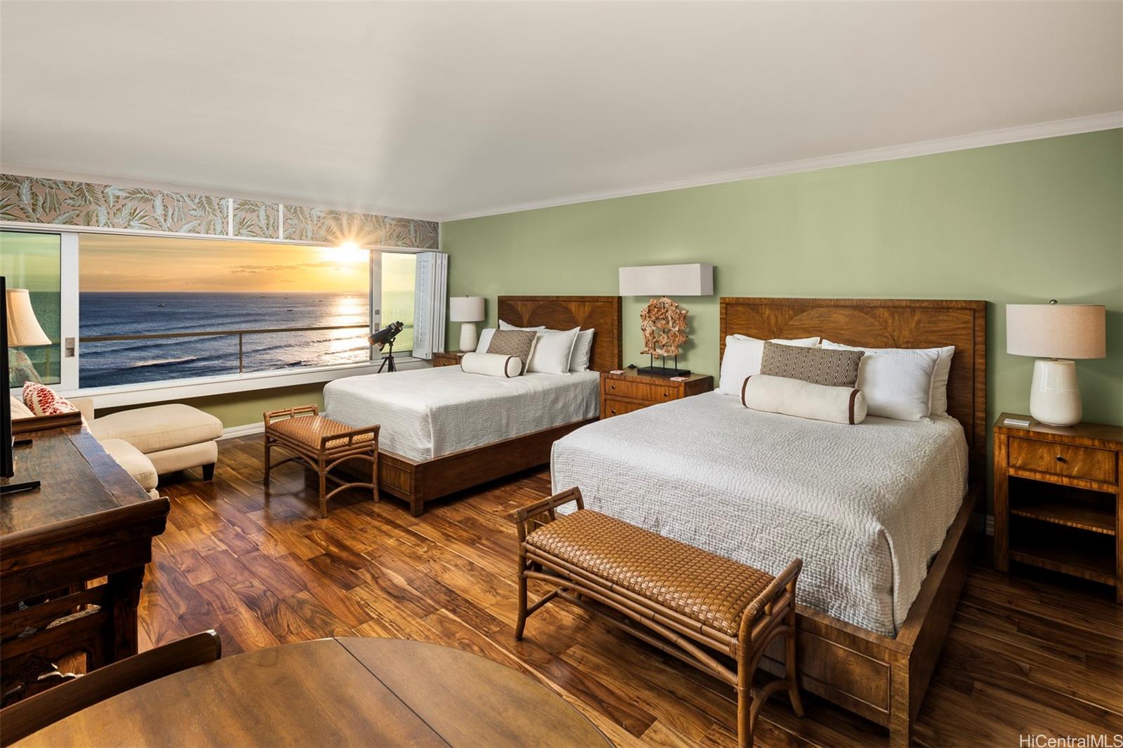 最前列の眺望を誇る、時代を超えたビーチフロントの暮らし。 象徴的な「コロニー・サーフ」の最前列という絶好のロケーションに位置する、美しく改装されたこのワンルームマンションは、オアフ島で最も人気のある砂浜の一つに面し、海辺の暮らしを満喫できるまたとない機会を提供します。 この邸宅からは太平洋の素晴らしい景色を一望でき、自然光がたっぷりと差し込むため、温かみのある居心地の良い、島を彷彿とさせるインテリアが演出されています。 上質なアカシア材のフローリングが、温かみとリラックスしたアイランドスタイルを演出します。 細部までこだわって設計されたキッチンには、特注のマホガニー製キャビネット、花崗岩のカウンタートップ、食器を飾るオープンシェルフ、そしてビルトインのコンロが備わっており、スタイルと機能性を兼ね備えています。 このバスルームは、特注のマホガニー製キャビネット、花崗岩のカウンター、そしてウォークインシャワーを備え、美しく仕上げられています。 ビルトインの洗濯機と乾燥機があれば、毎日の生活がより便利になります。 島でのゆったりとした暮らしを想定して設計されたこの住居は、心地よい波の音と穏やかな貿易風が、その魅力をさらに引き立てています。 ビーチへはすぐに出られ、カピオラニ公園やワイキキの活気あふれる街並みにも至近。ミシェルズ、ハウ・ツリー、アーデンといった評判の高いレストランも徒歩圏内にあるため、この海を一望できる一等地の邸宅は、まさに珠玉の物件です。 .